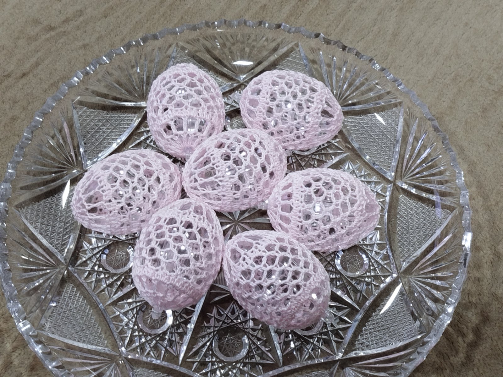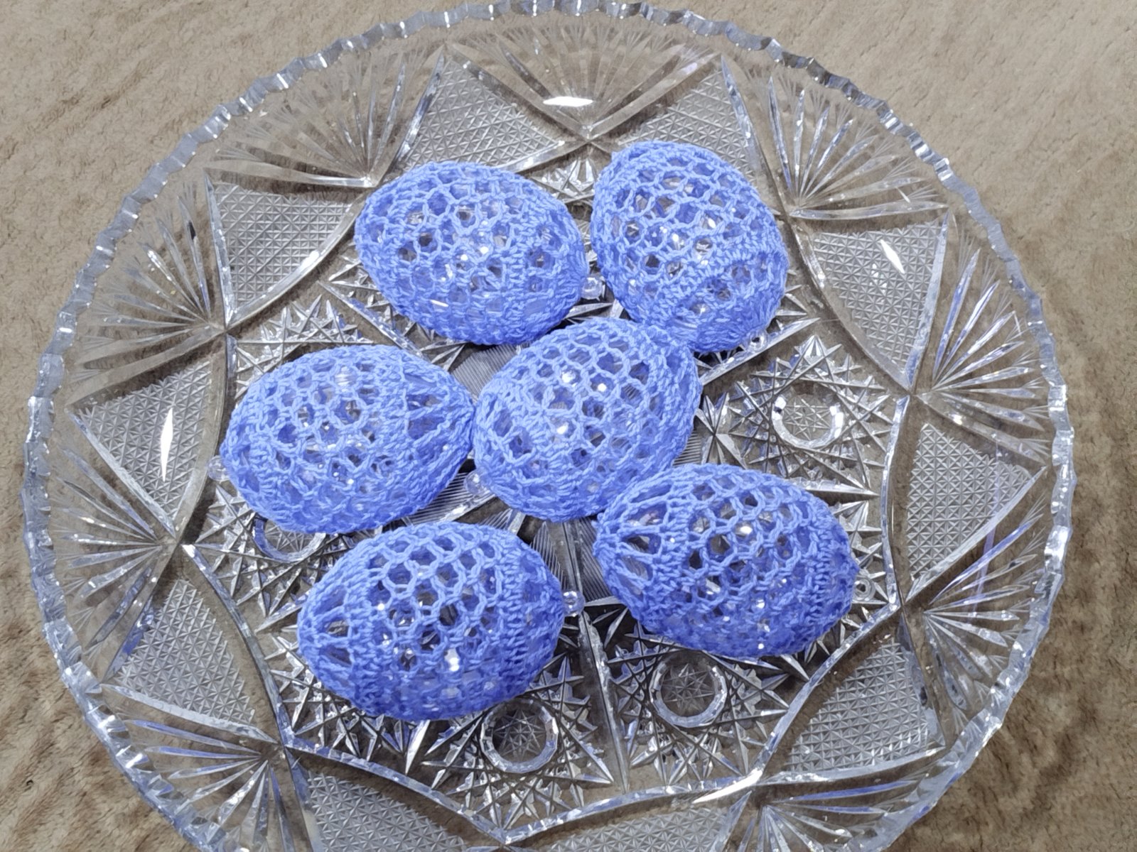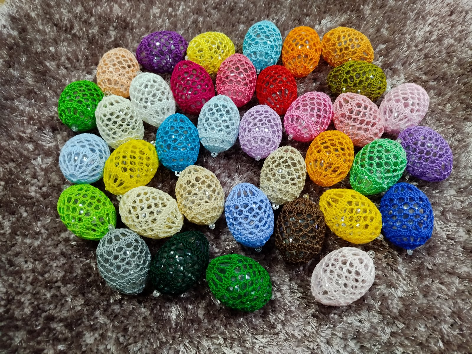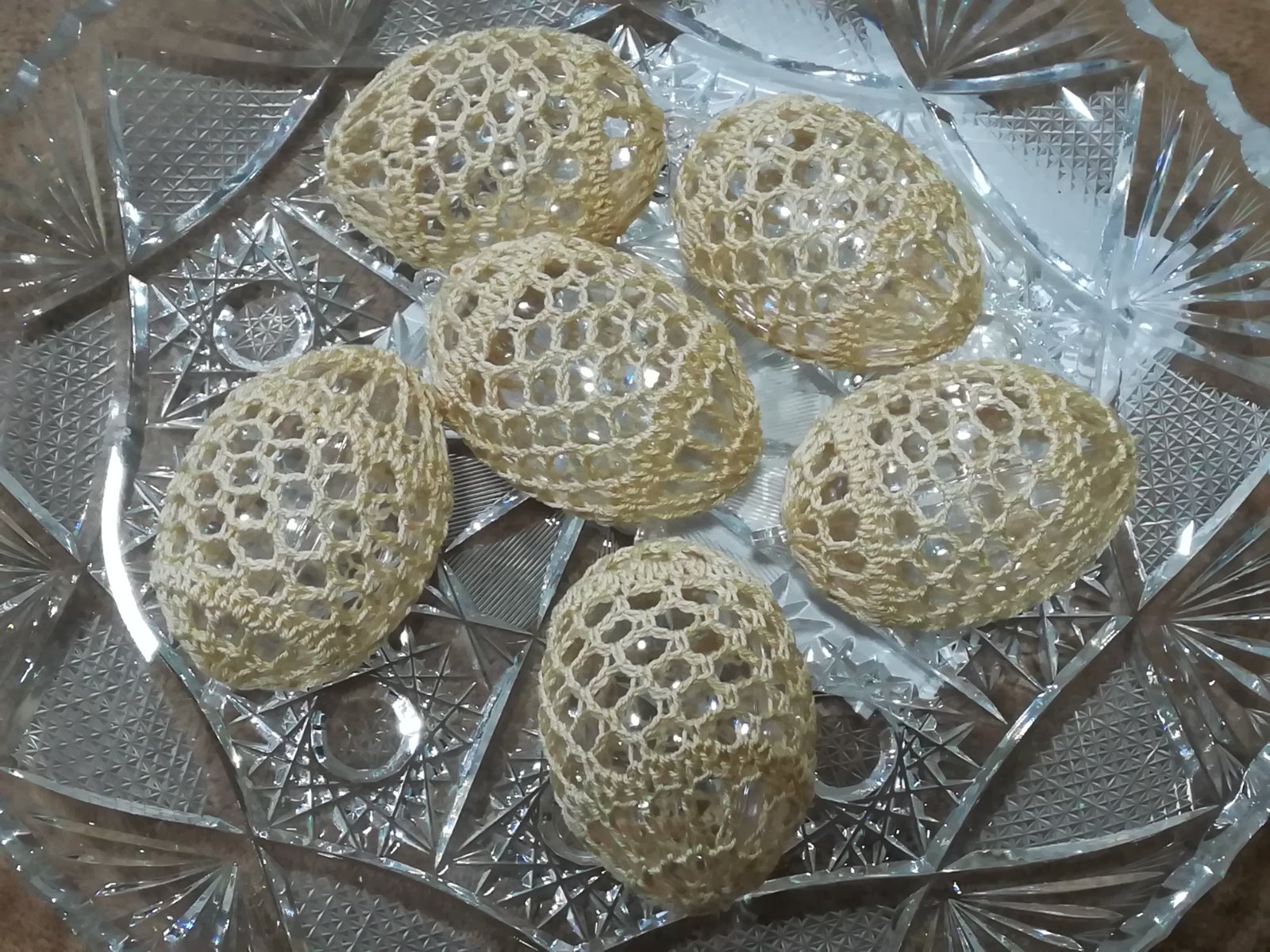 Háčkované na plastovom vajíčku .