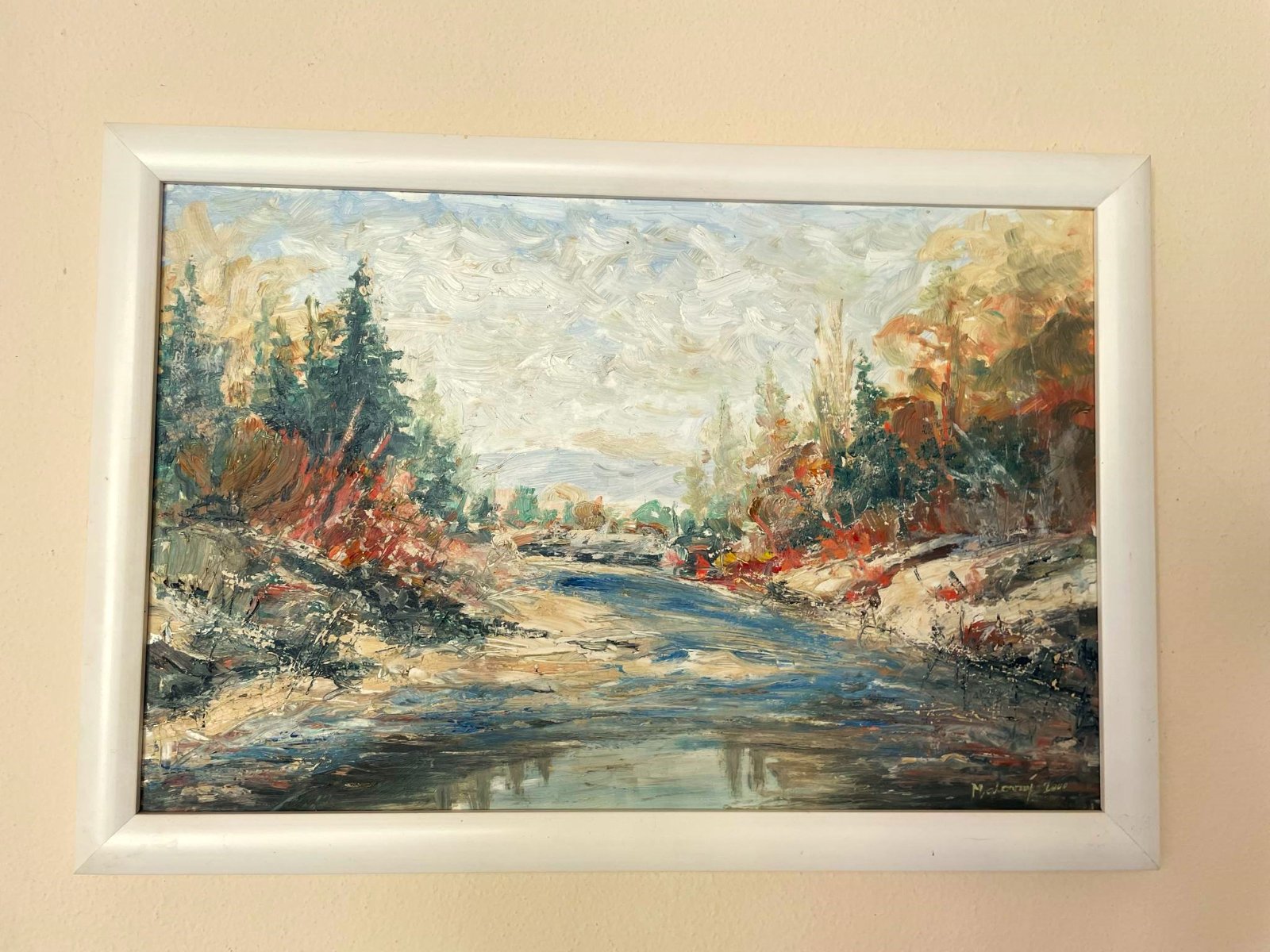 krásna olejomaľba s bielym rámom,47 x 32 cm
