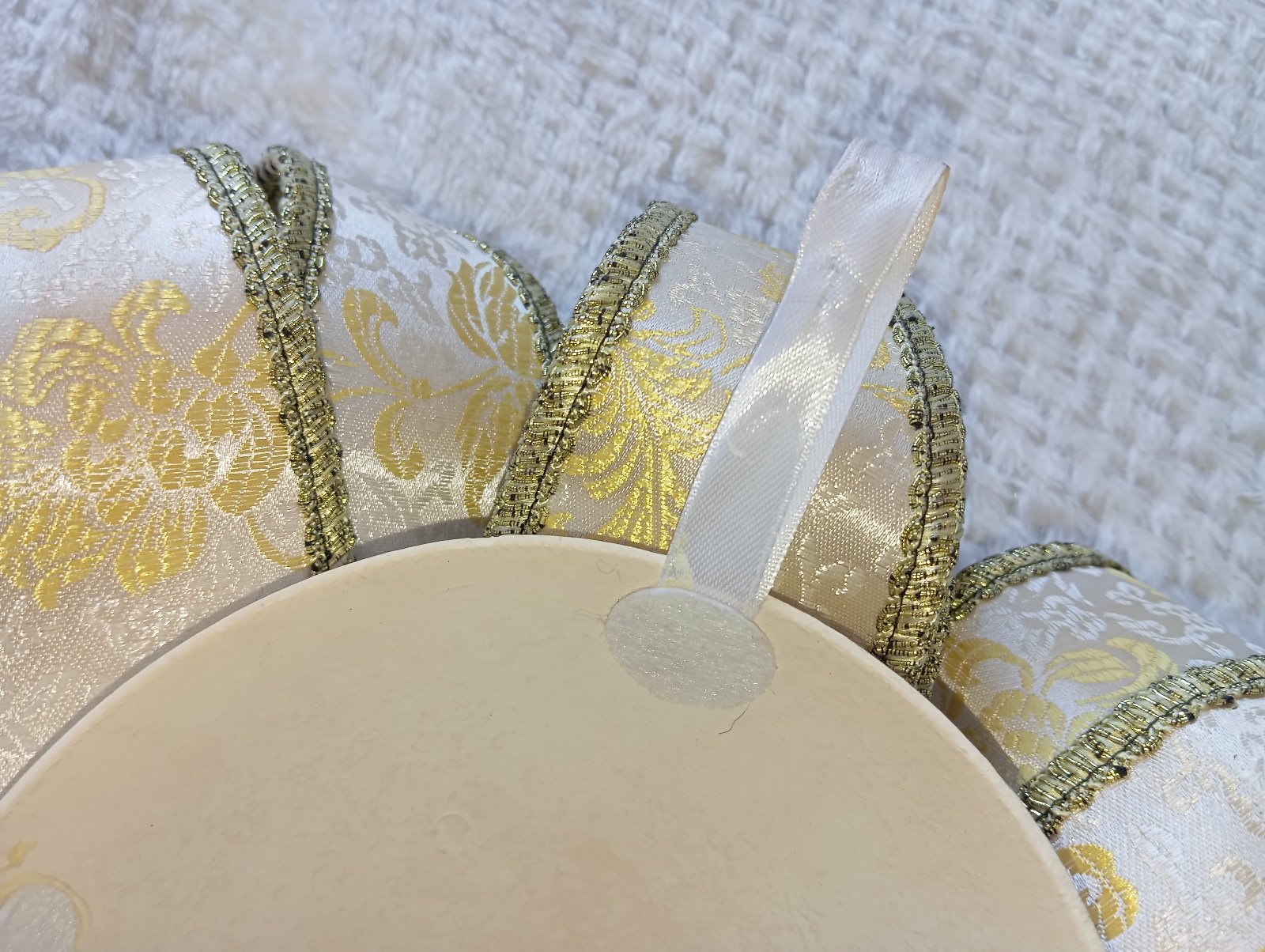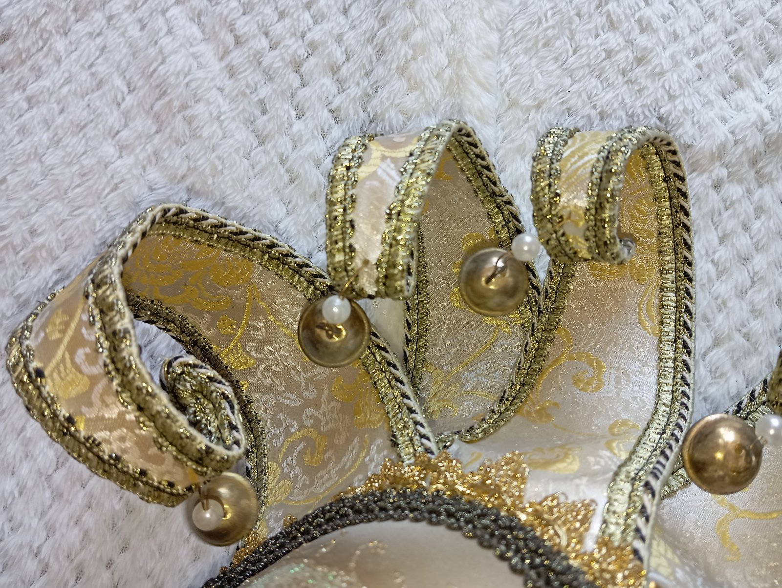 Tvár je plastová a maľba nie je poškodená. Ani látka na ozdobách nie je poškodená.