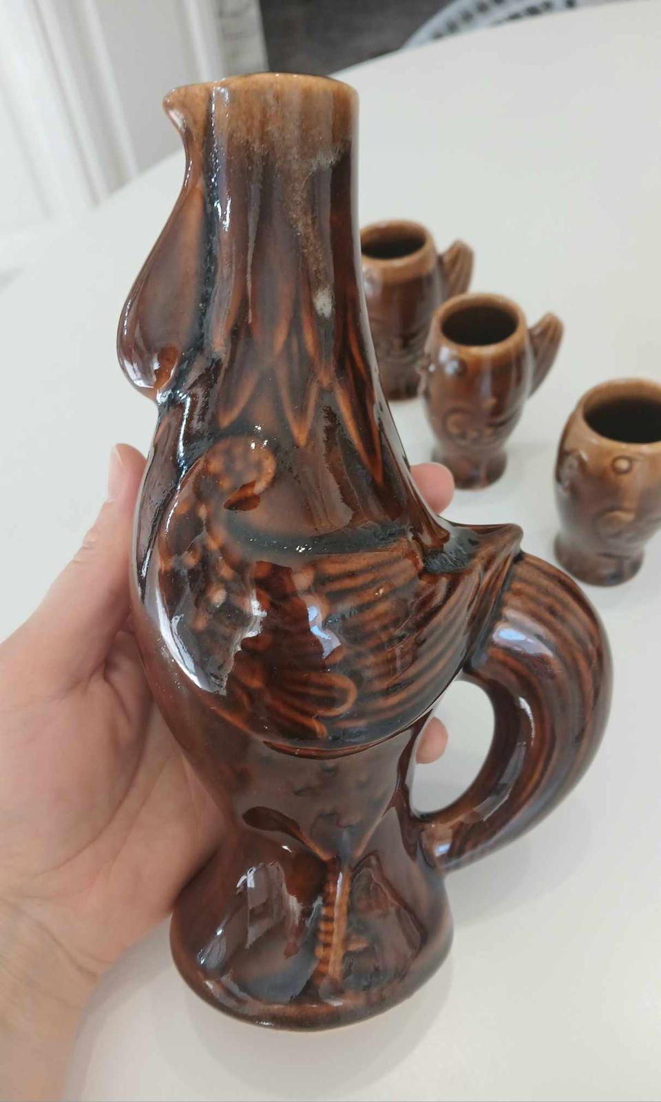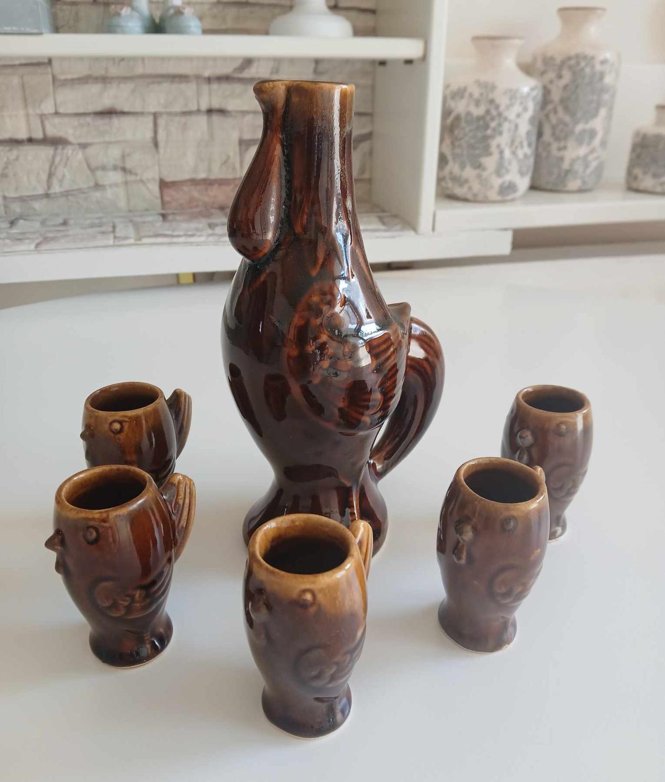 Krásna jarná - veľkonočná dekorácia, keramický kohútik so sliepočkami. Kohút je vysoký 21cm a sliepky sú vysoké 7cm. Čistý stav. Cena za 6kusov/10Eur.