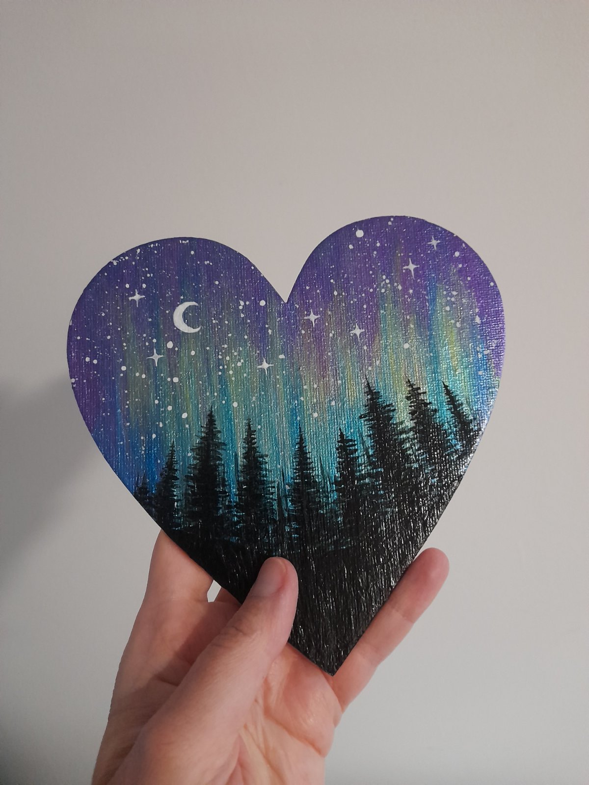 Akrylová maľba, polárna žiara, hviezdy,...