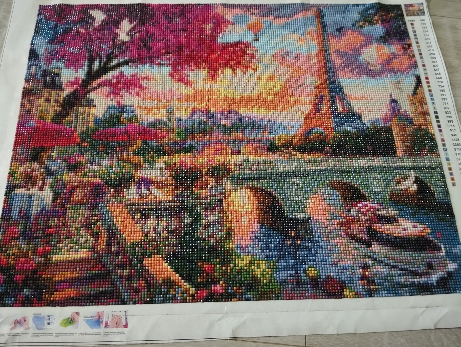 Nové, ručne urobené nádherné umelecké dielo vytvorené formou diamantového maľovania. Diamantové maľovanie (alebo diamantovanie) podľa čísiel je skutočná špecialita, ide o vyfarbovanie obrazu formou vsádzania farebných plastových diamantov na lepivý podklad. Pri svetle sa krásne trbliece. Poctivá ručná práca s množstvom kamienkov. Je to plátno o rozmere 50x40 cm, je potrebné si to dať zarámovať či už do skla alebo rámu...vhodné aj ako originálny darček