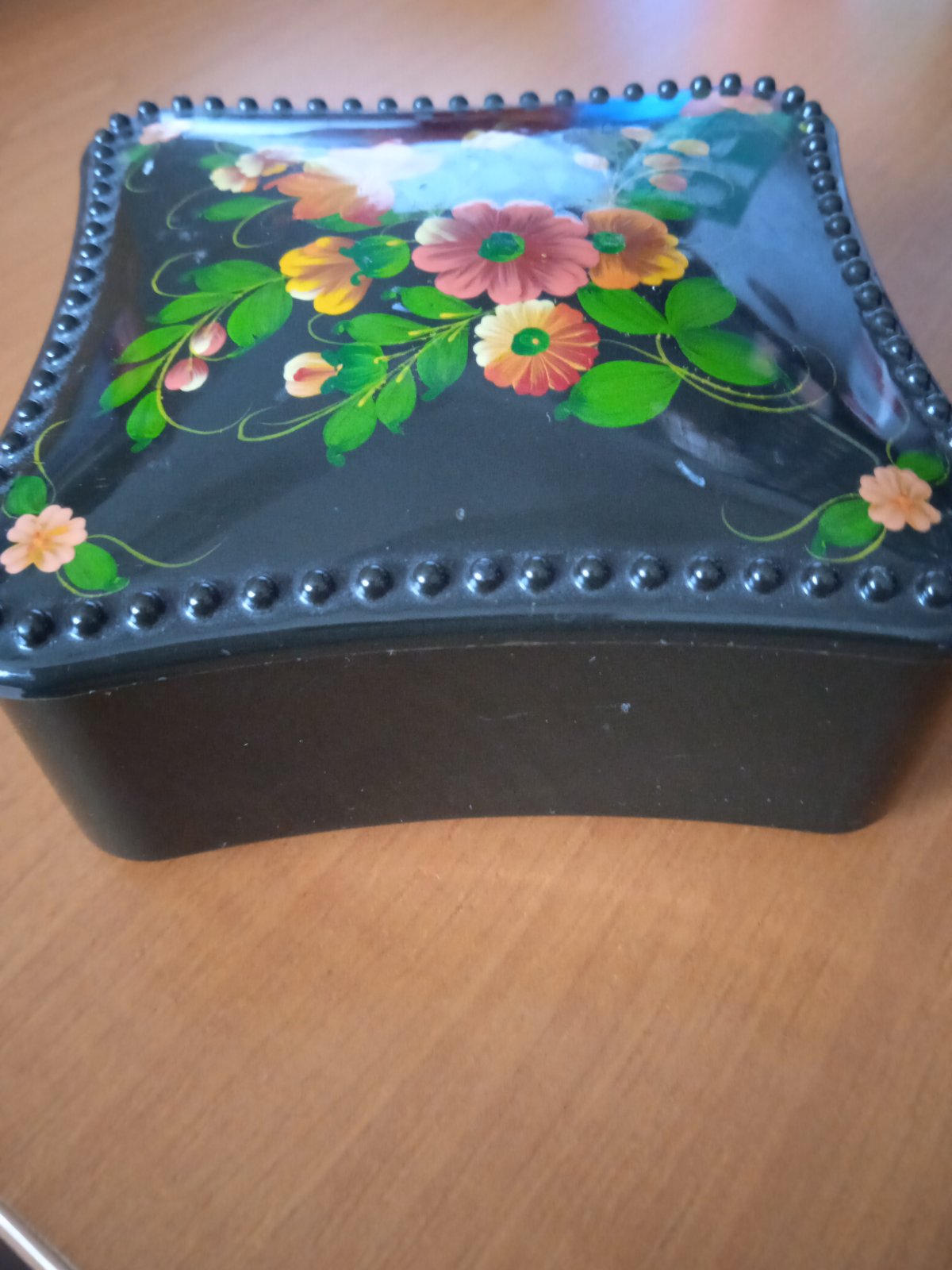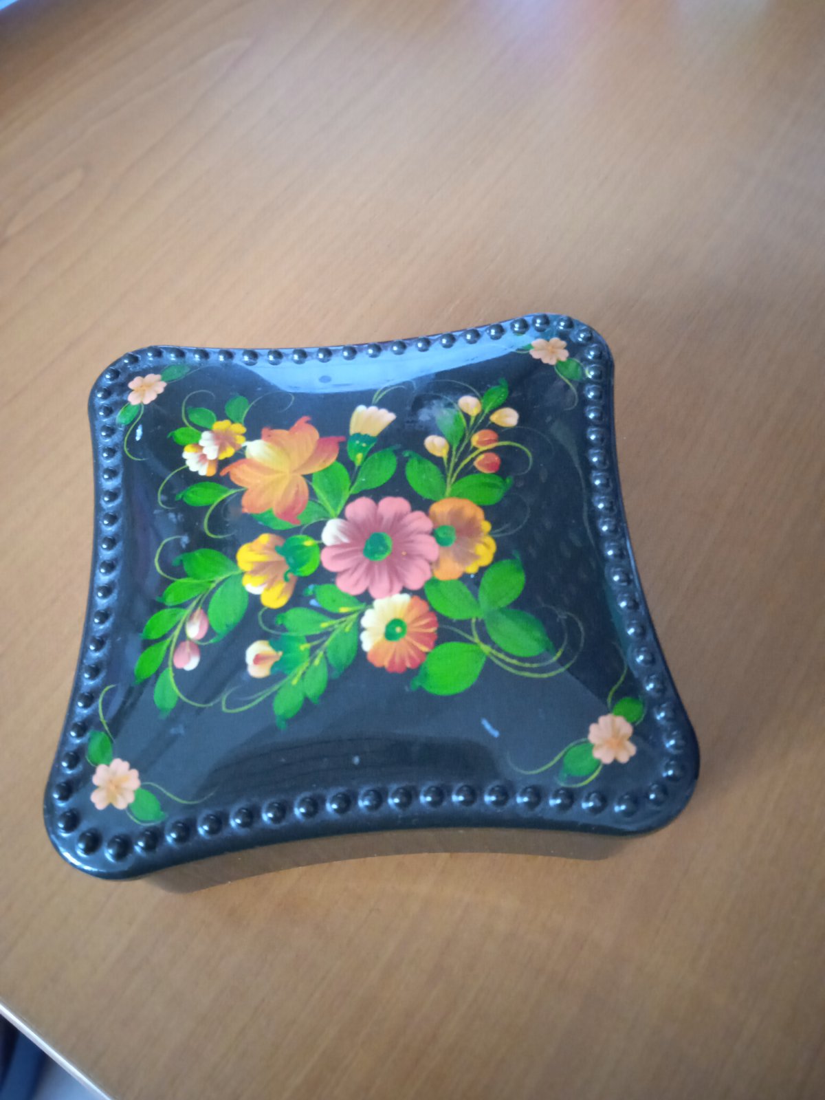Cca 8,5 x 8,5 x 3,5 cm, mala škrabanec, viditeľný na fotke
