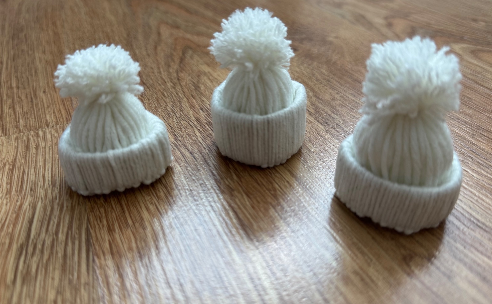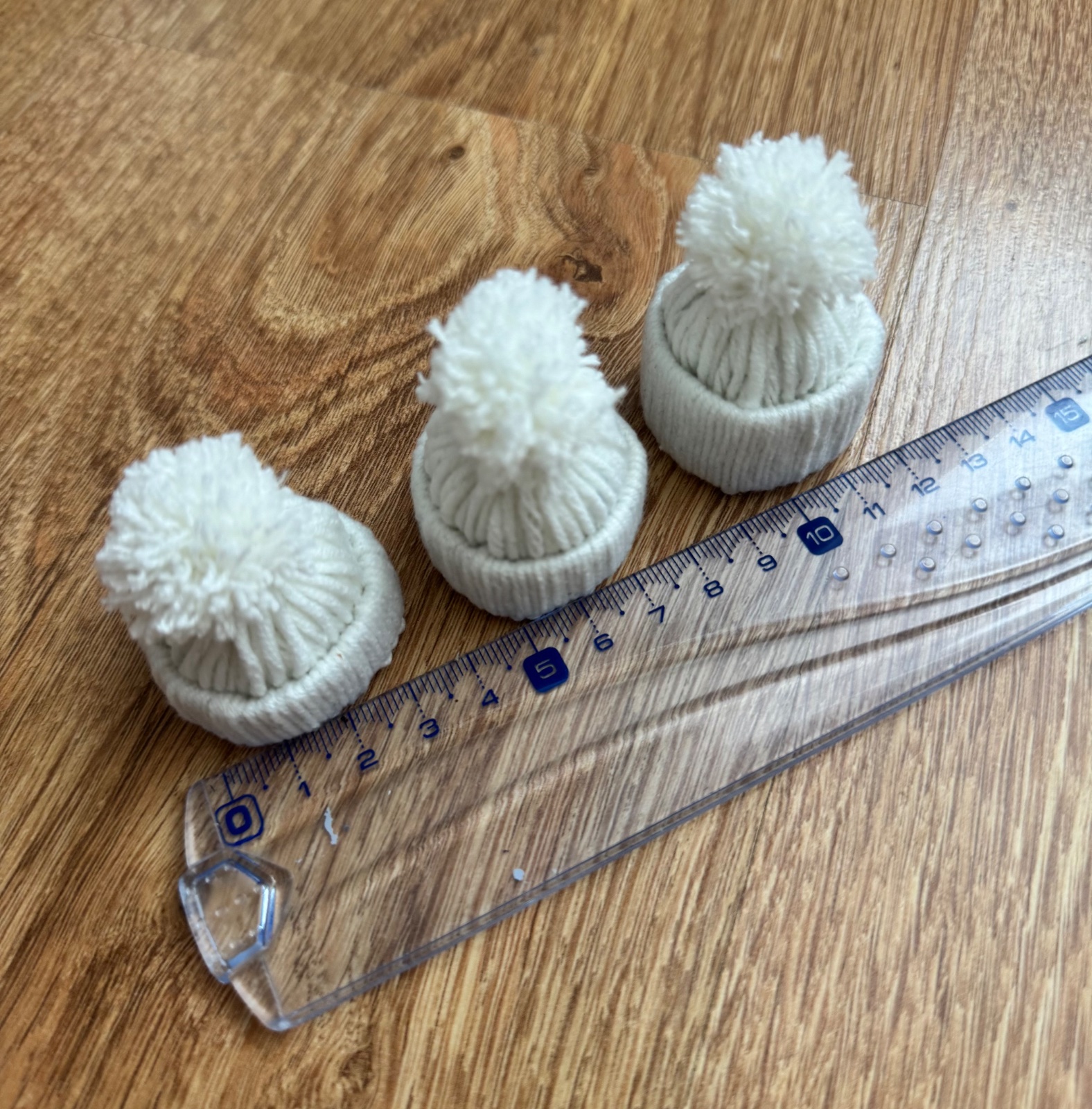Mini čiapky, čiapočky ako vianočná výzdoba alebo zimná výzdoba.. s pridaním šnúrky je možné aj zavesiť.