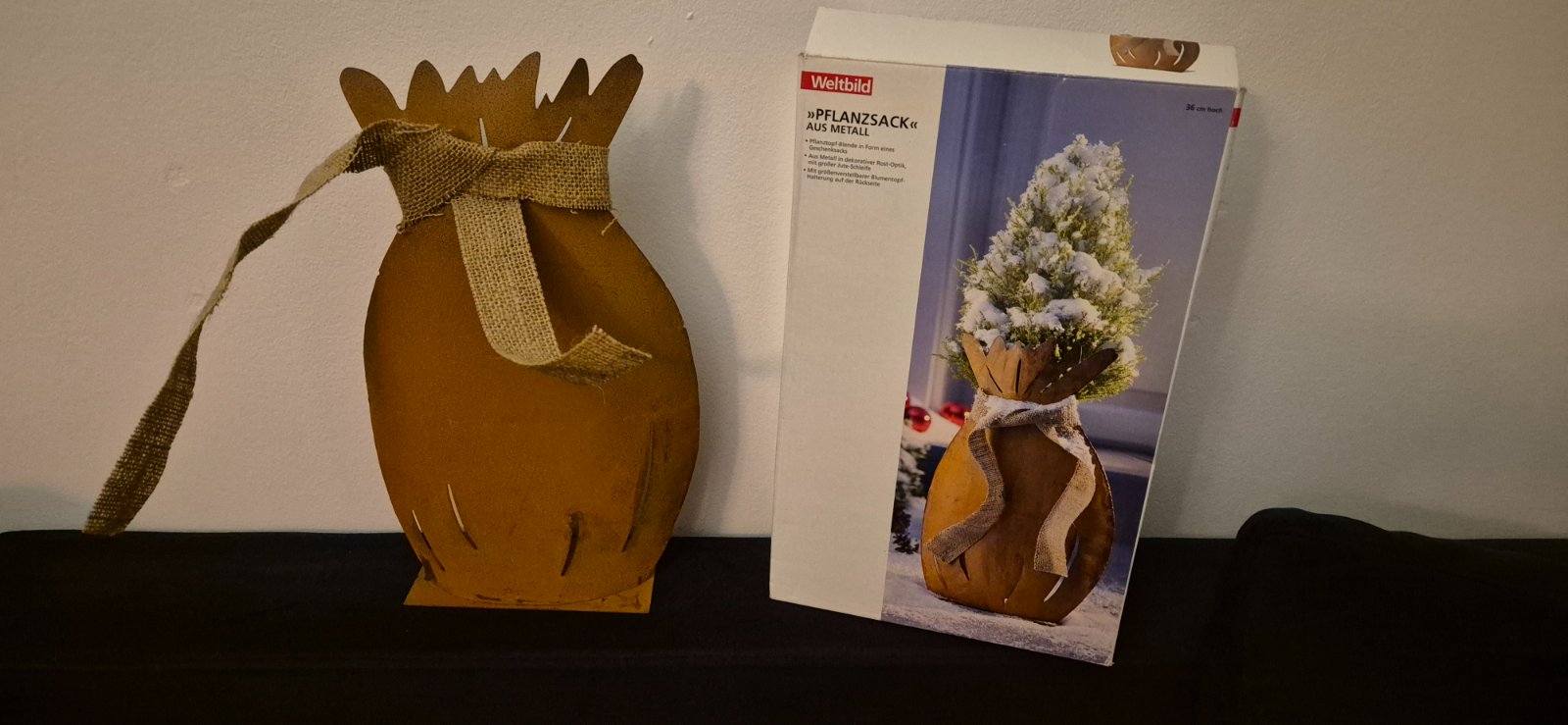 Nielen vianočná dekorácia, zo zadu je držiak na kvetináč. Je to s plechu, s povrchovou úpravou. Výška cca 36cm