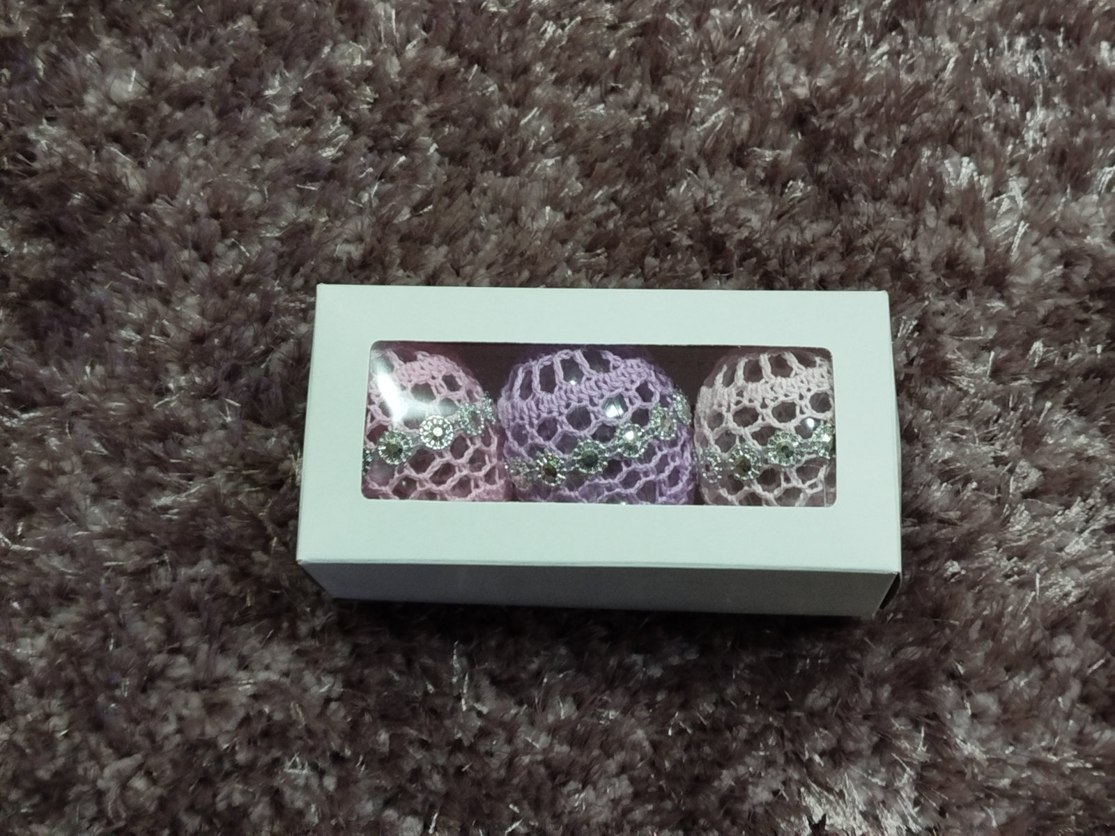 Háčkované na plastovom vajíčku. Uháčkované zo 100 % bavlnenej priadze. Cena je uvedená za 3 kusov.