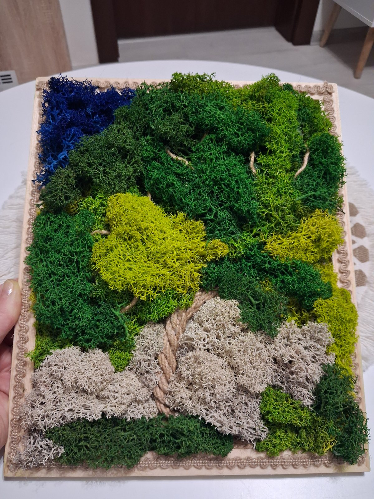 Obraz na drevenom rámiku zo stabilizovaného machu, 25x30 cm, s háčikom na zavesenie