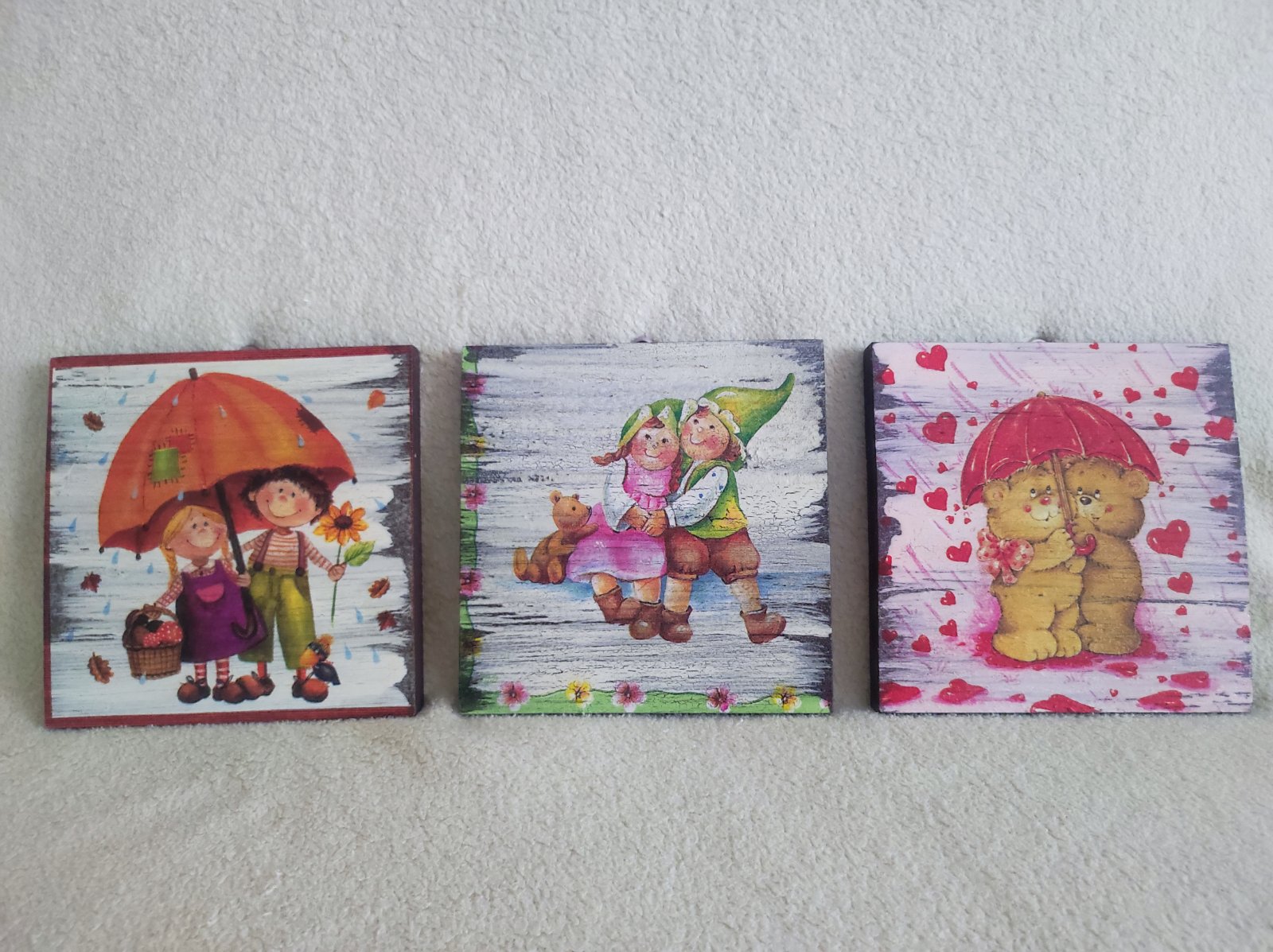 Predám krásne obrázky, kupované na vianočných trhoch. Rozmer 16x16x1,5 cm.