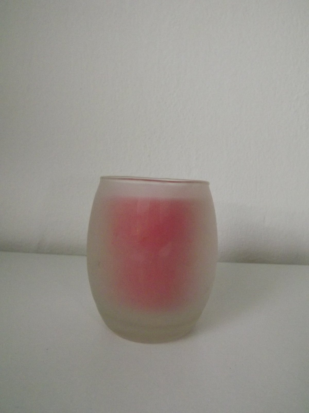 Svietnik na 1 čajovú sviečku. V kalíšku je nakvapkany vosk.