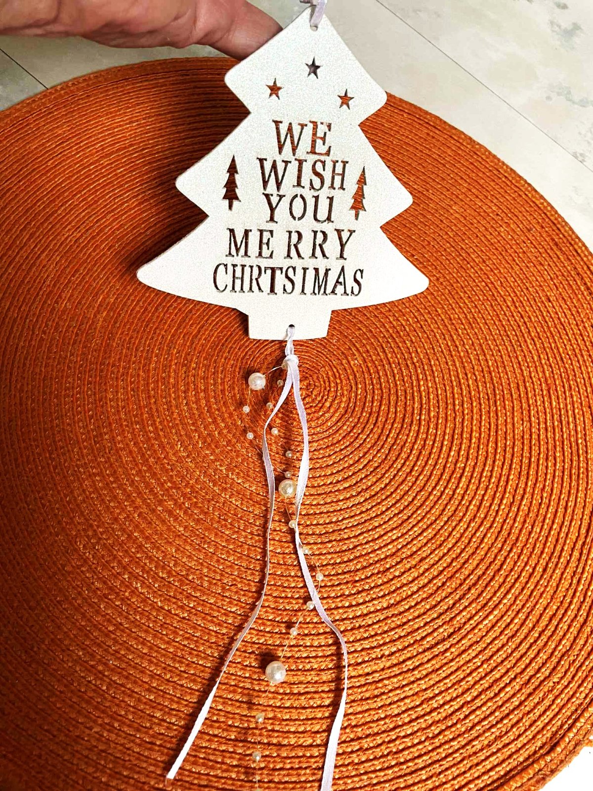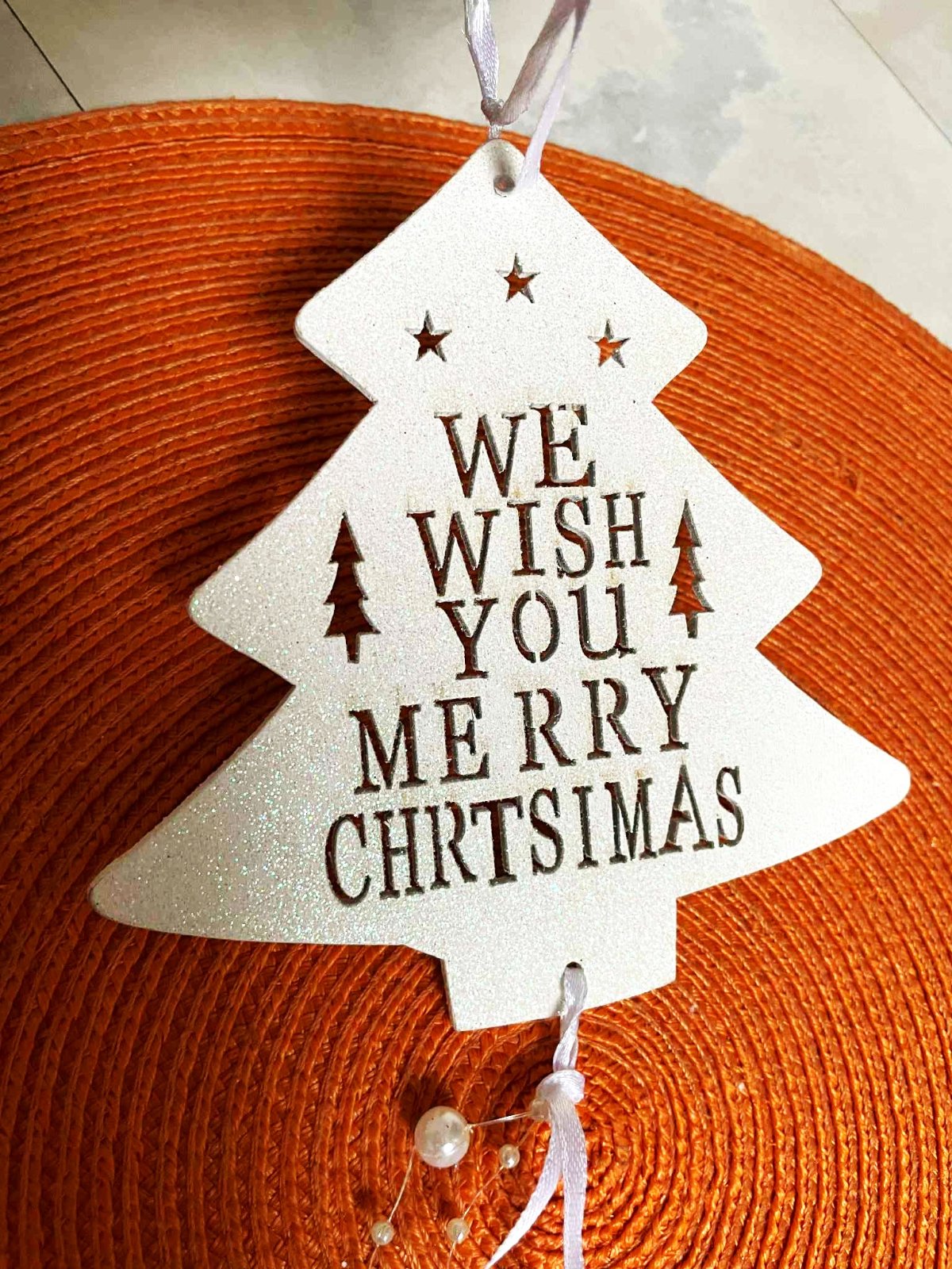 krásna drevená dekorácia na dvere alebo na stromček,top stav,postriebrená jemnými trblietkami, v prípade záujmu mám viac kusov - nafotím