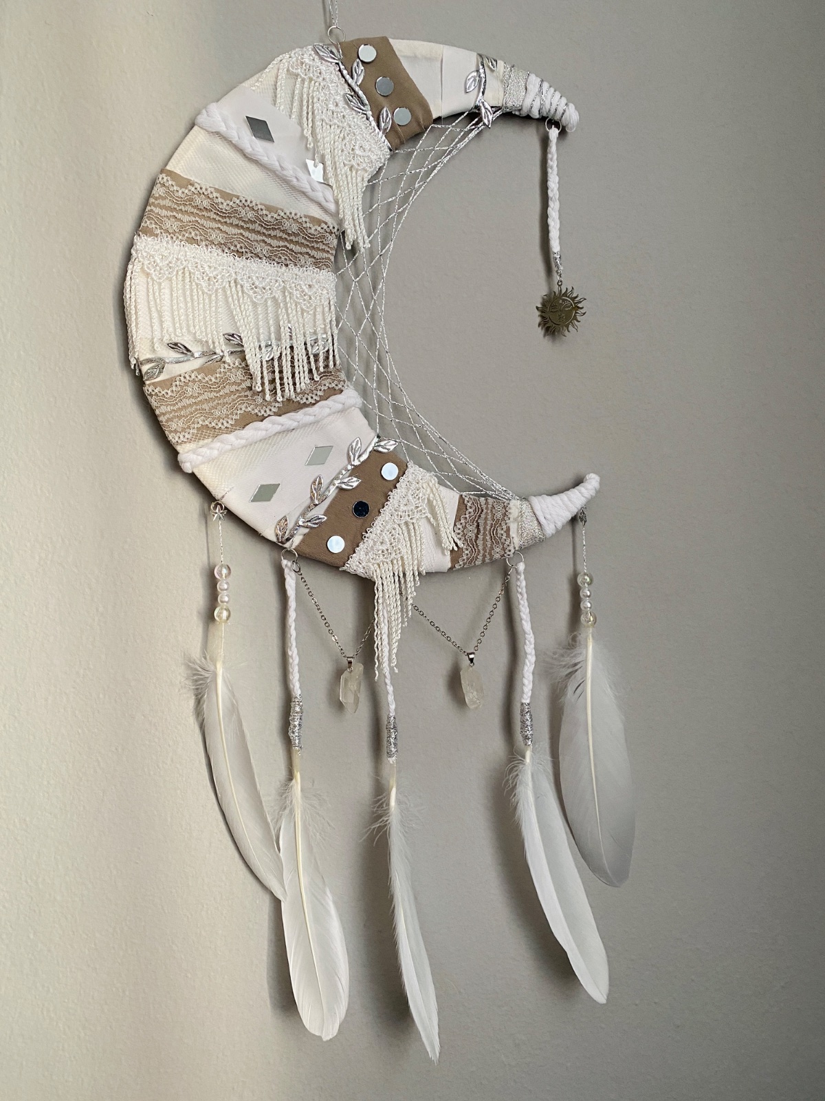 Predám biely lapač snov, s čírim kremeňom pre ochranu a harmóniu domova 😊🤍