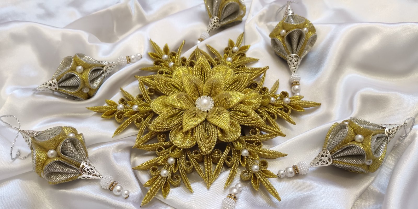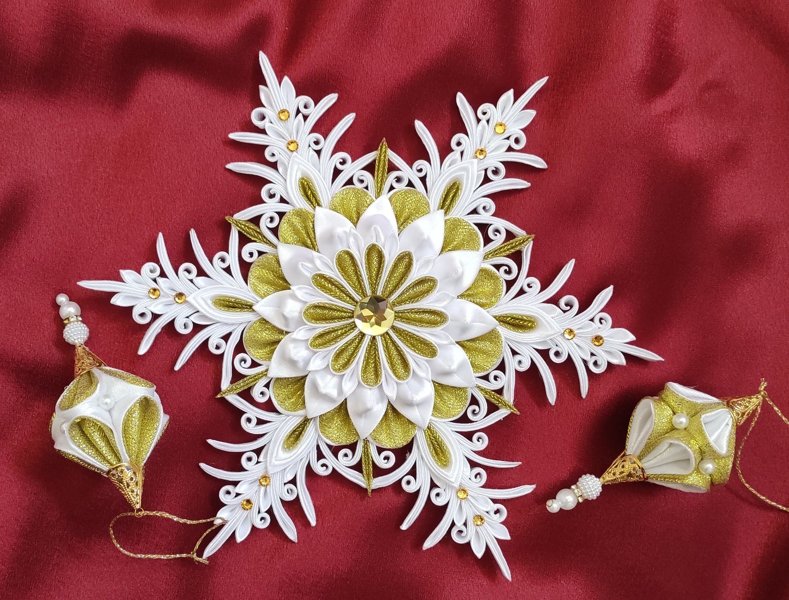 Zlaté prvky môžu byť podľa vášho želania nahradené striebornými, aby ozdoba dokonale ladila s vašou výzdobou.