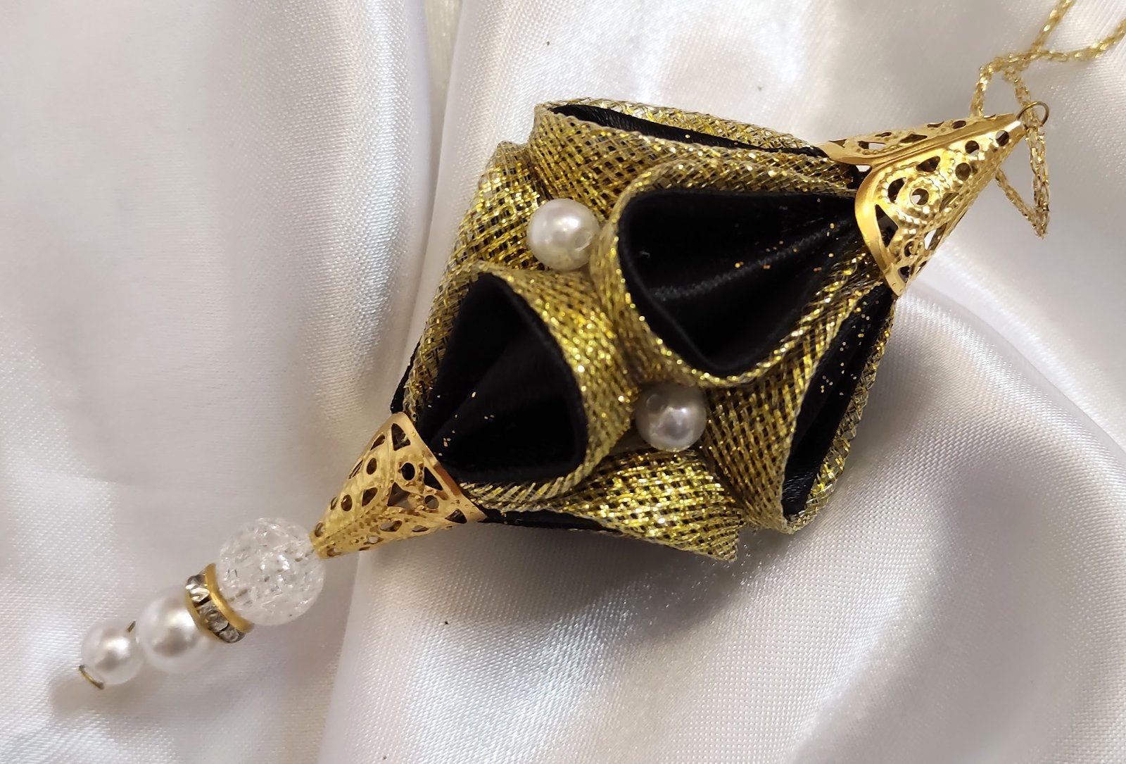 Vneste do svojej vianočnej výzdoby nádych luxusu s elegantnou ozdobou z jemnej saténovej a trblietavej organzovej stuhy.