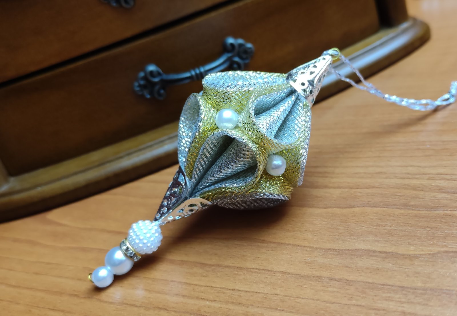Cencúľ z ligotavej organzy, ktorý spája zlaté a strieborné tóny, prinesie do vašej vianočnej výzdoby jedinečný nádych luxusu.