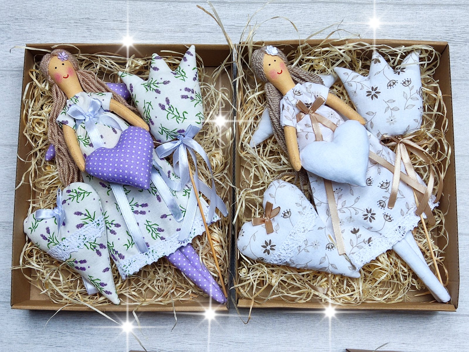Darčekové sady obsahujú anjelik 30cm, srdiečko plnené sušenou levanduľou 14cm, Tulipán zápich 20cm
