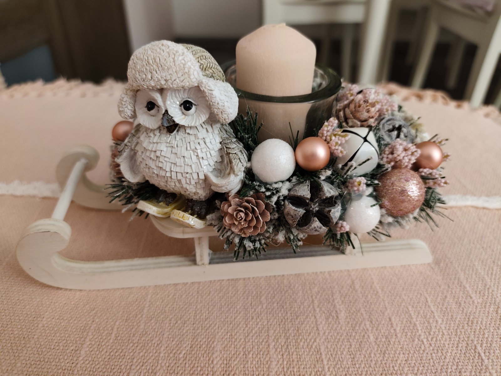 Vianočná dekorácia sane so sovičkou