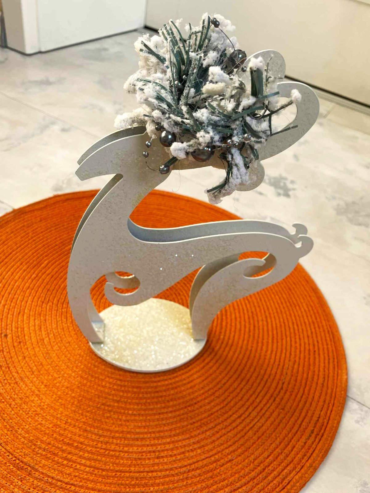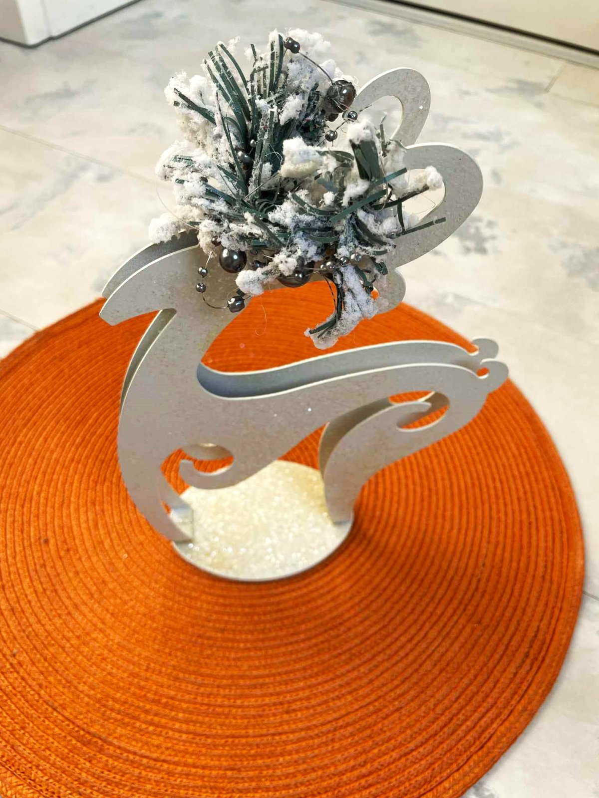 krásna nevšedná a zaujímavá vianočná dekorácia - svietnik ( nemusí sa použiť ako svietnik,ale môže ) - raz použitý - vystavený na 1 Vianoce,top stav,výška = 23 cm,farba ľadovo biela farba so strieborným popraškom, krásne vynikne so štíhlou bielou sviečkou
