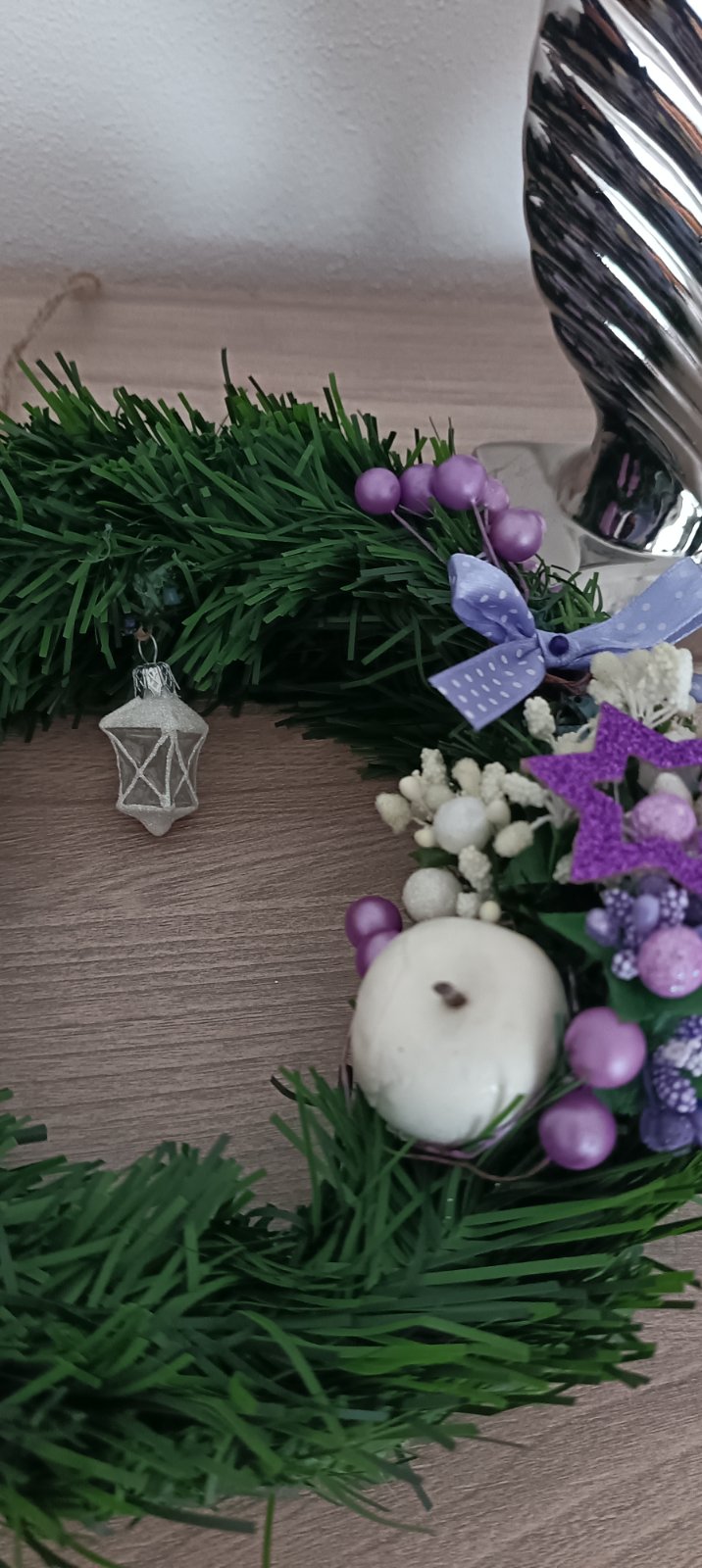 Vianočný veniec lilac s lampášikom