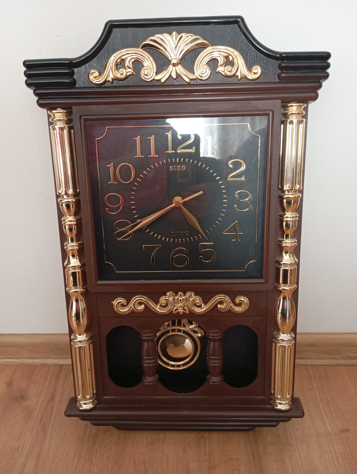 V peknom ,málo používanom stave.Naťahujú sa kľúčom ,odbíjajú každú pol hodinu 72x32 cm