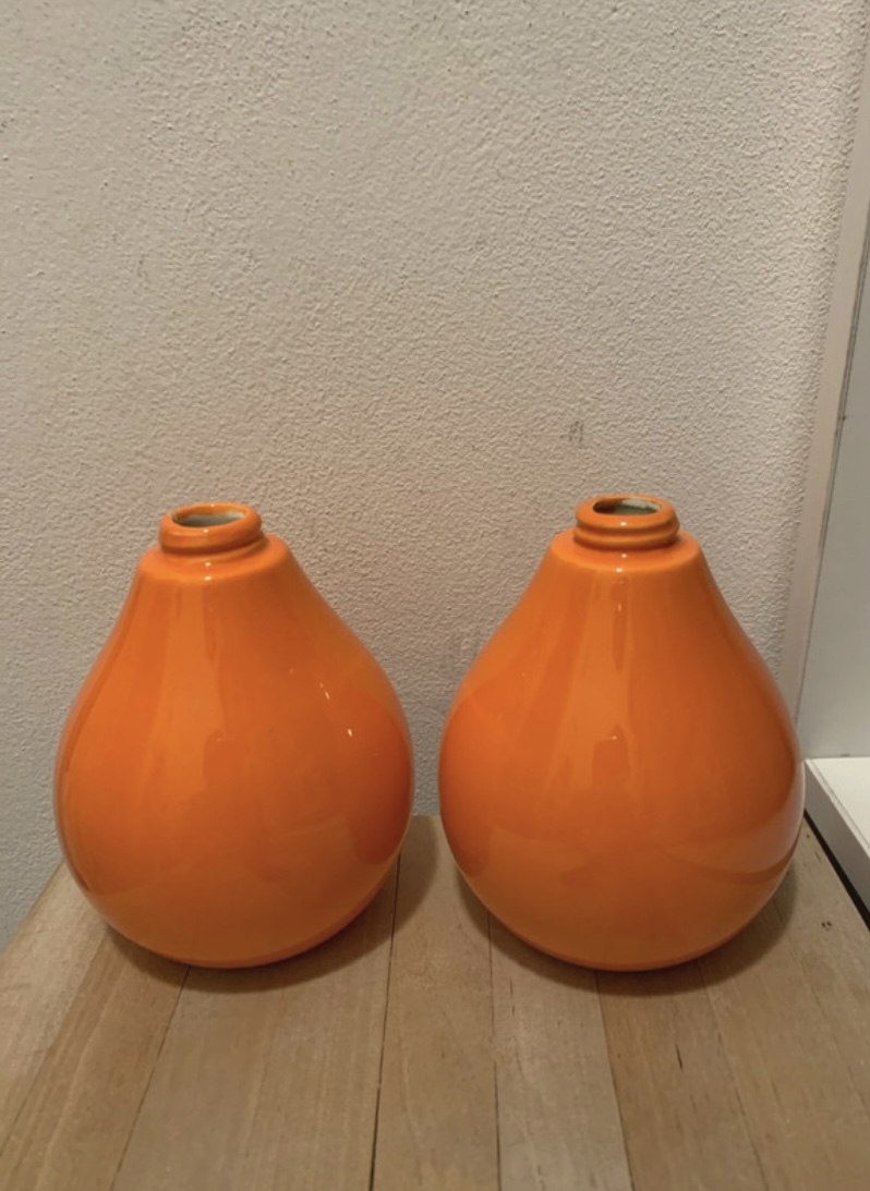Predám súpravu keramiky v oranžovej farbe – vázička 25 cm, stojan na servítky 12x9 cm, miska na oriešky 21 cm, nová, nepoškodená, nepoužívaná. Cena spolu 10 € + poštovné.