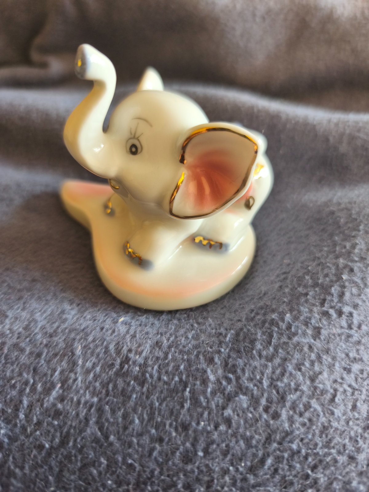 Krásny nepoškodený sloník Bielej farby v kombinácii s ružovou, modrou a zlatou Výška je 6,5 cm.