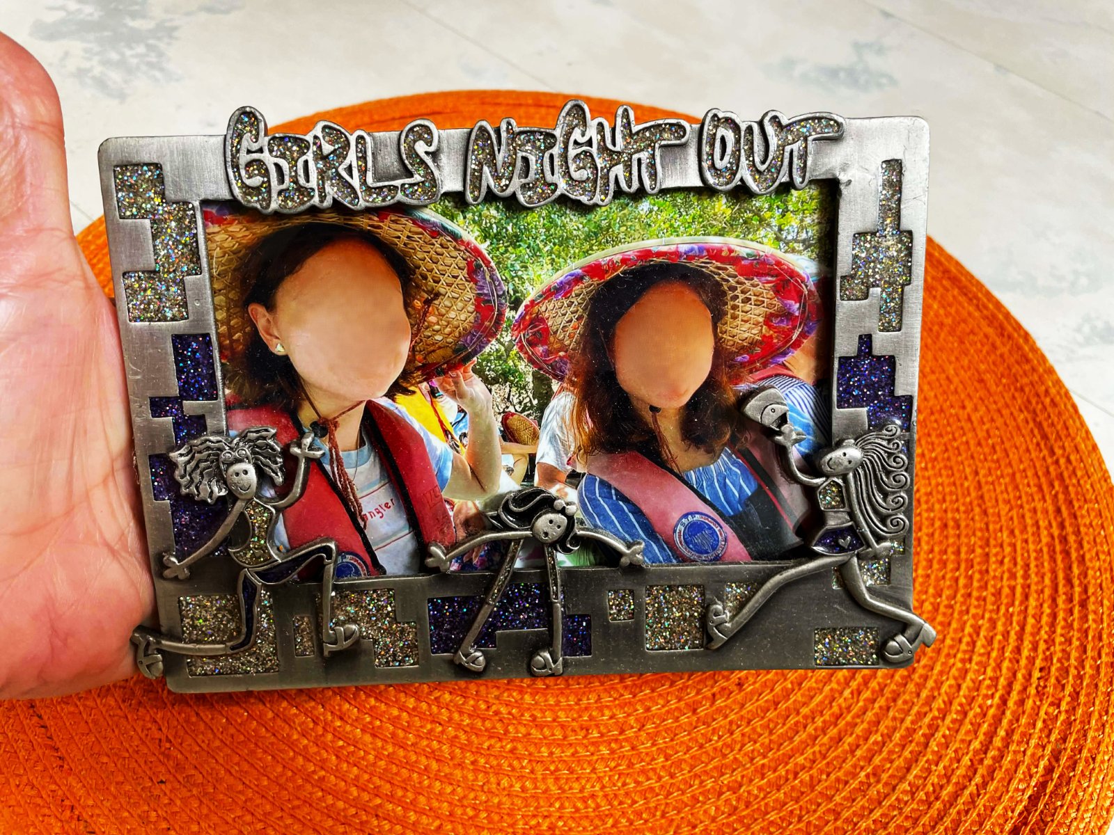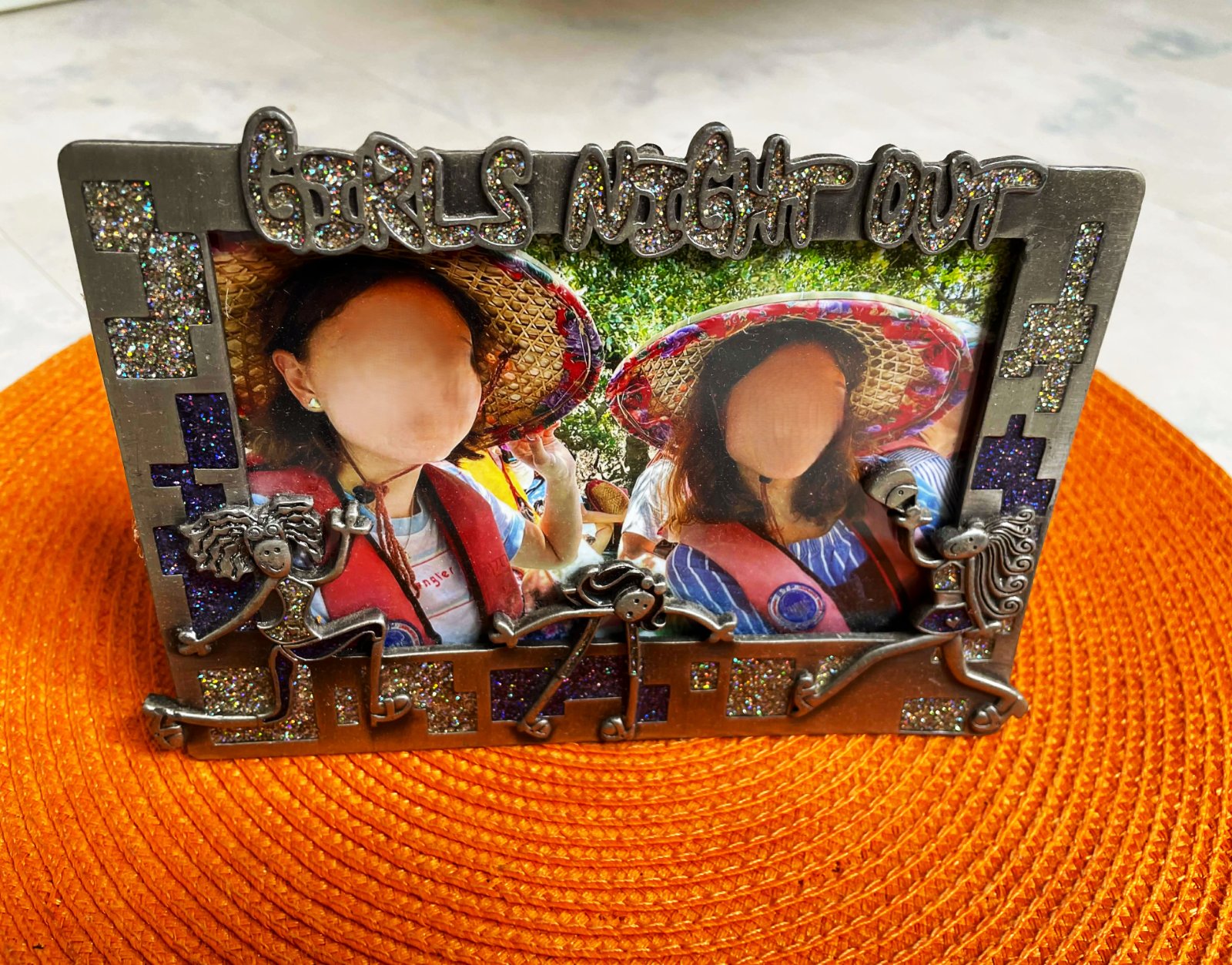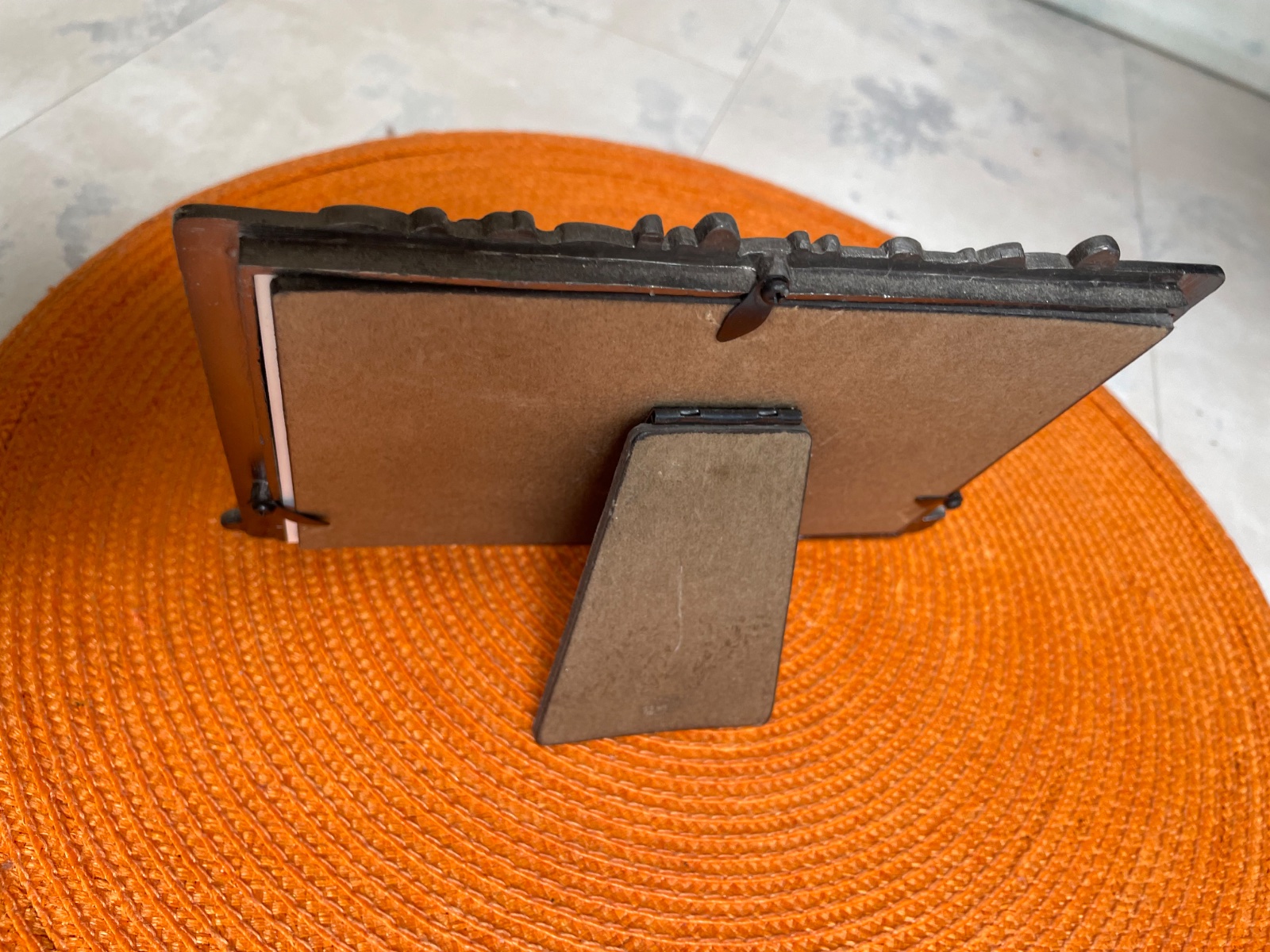 krásny ťažší kovový 3 D fotorámik,málo používaný,rozmer : 13 x 17 cm,plasticky vystupujúce detaily s lurexovými prvkami