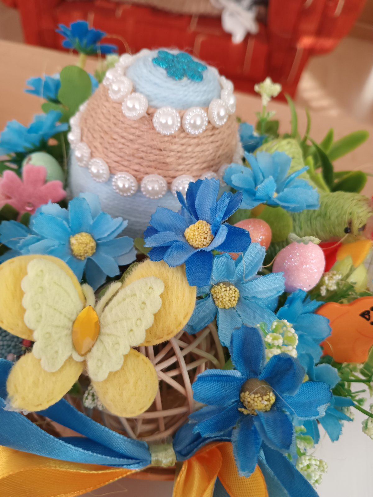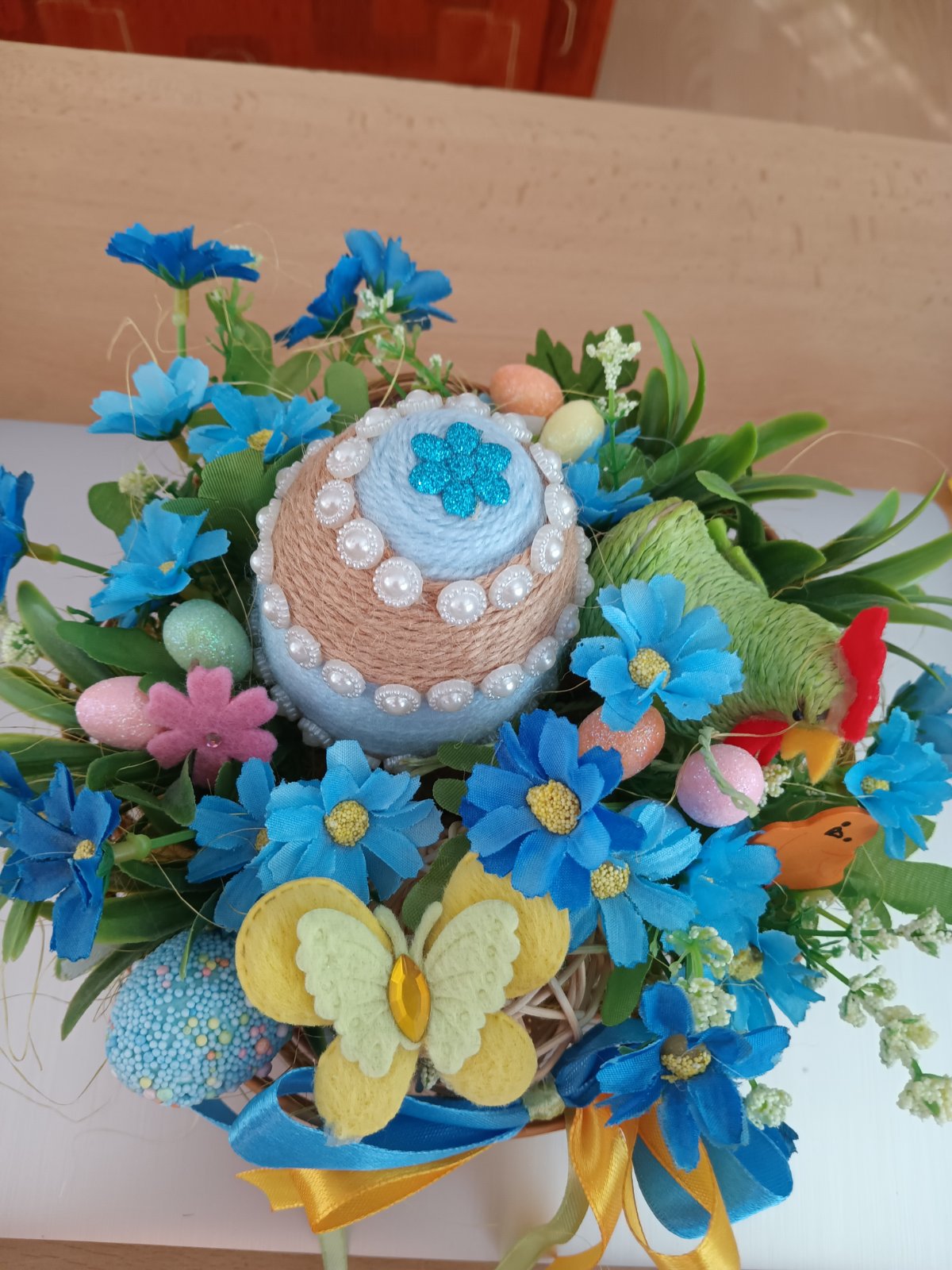 Veľkonočná dekorácia na stôl v košíku v modrozelozltej farbe cena 12e + pošta Platba vopred na účet ŽIADNA DOBIERKA