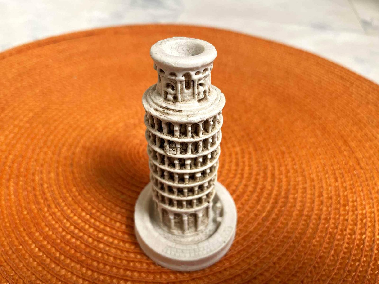 suvenýr z Talianska,replika šikmej veže v Pise,výška 9cm,spodný priemer 5 cm