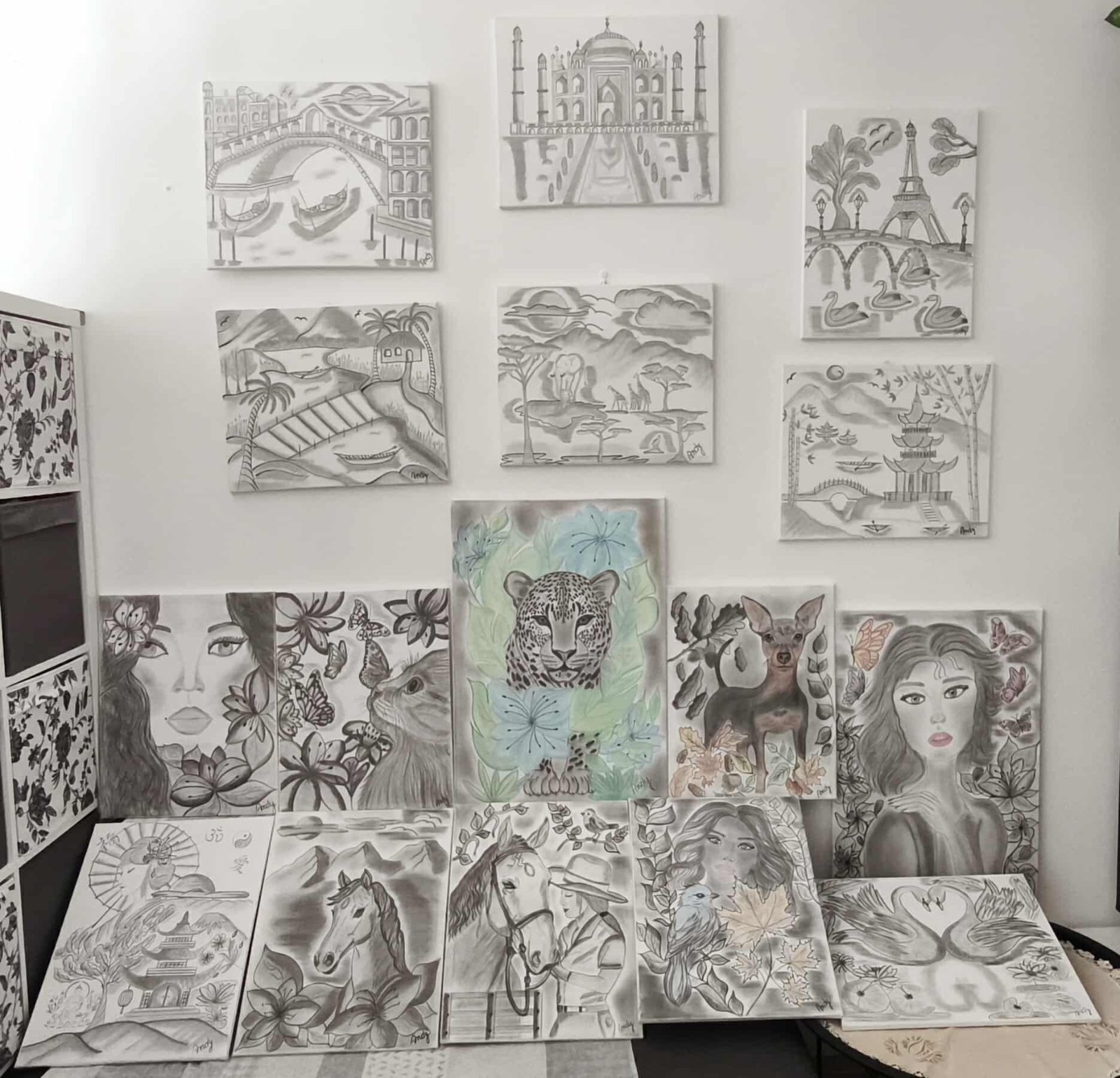 Všetky diela sú precízne ručne kreslené, vytvorené s dôrazom na detail a harmóniu.
