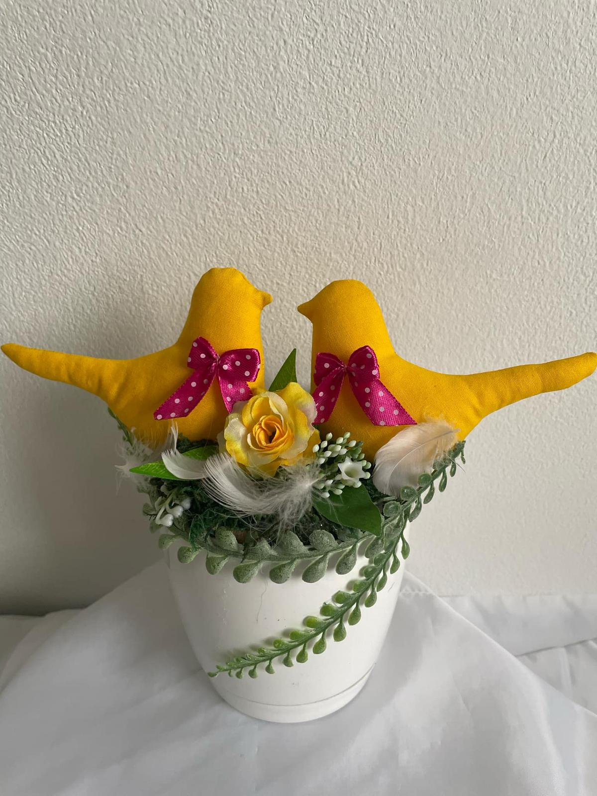 Milá jarná dekorácia s vtáčikom,výška cca 18cm