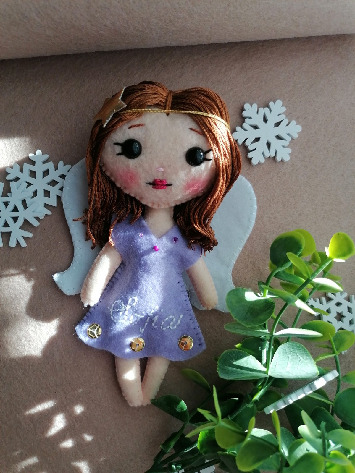 Ručne šitý anjelik, vyska 15cm. Farby na zelanie(vlasy, saty, kridla, oci) na zavesenie na stromcek, pripadne do izbicky. Cena 9.
