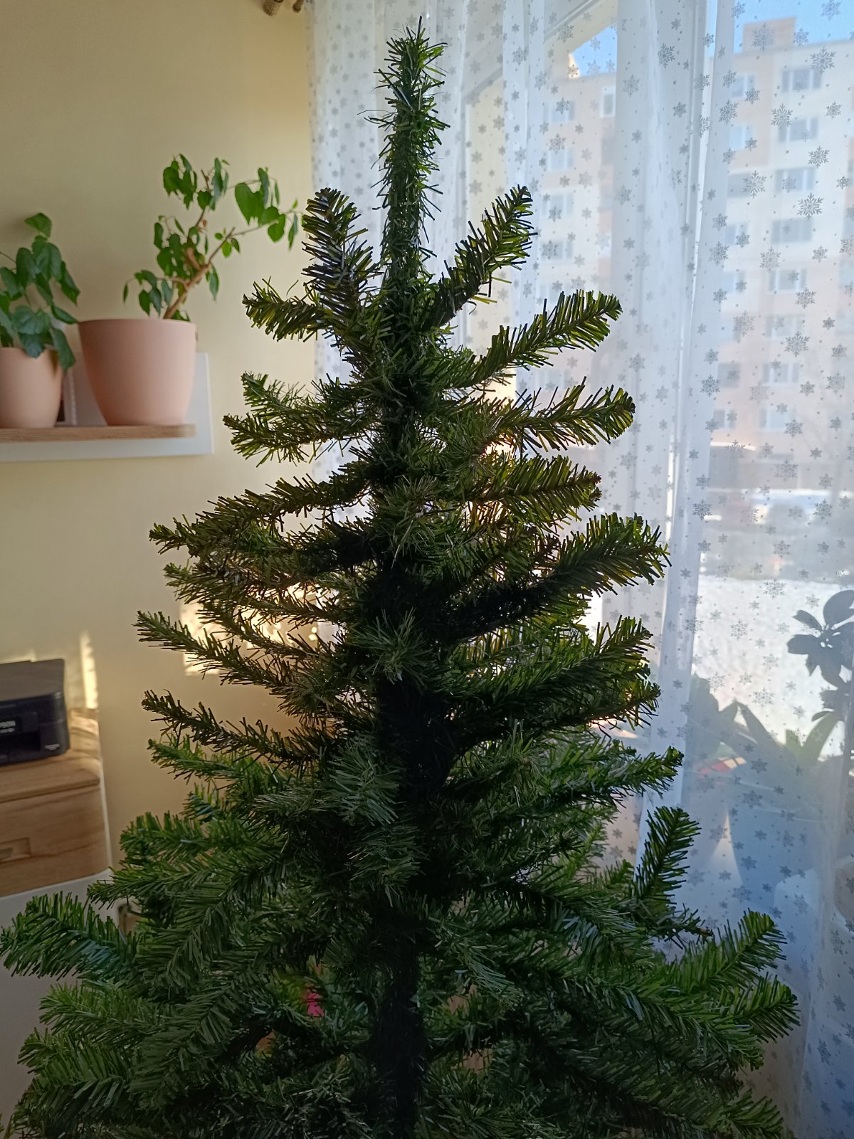 Stromcek stoji na umelootnom stojane a je zabaleny v povodnej krabici.