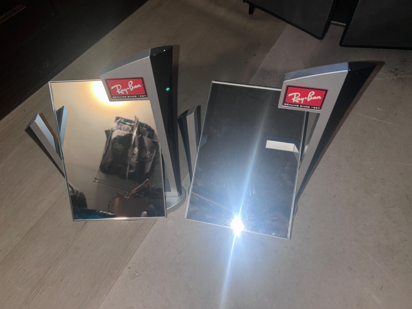 Nepouzite zrkadlo, ktore sa da nalepit na skrinu. Su z druhej strany zrkadla samolepky.