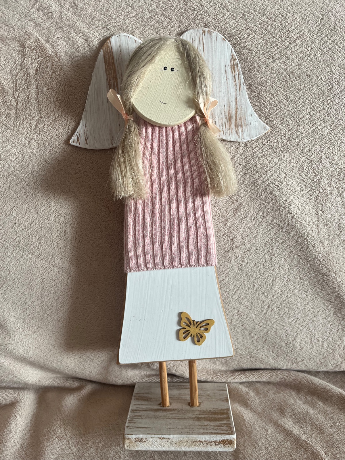 35-37 cm vysoký makrame anjel pre šťastie alebo len tak pre radosť.