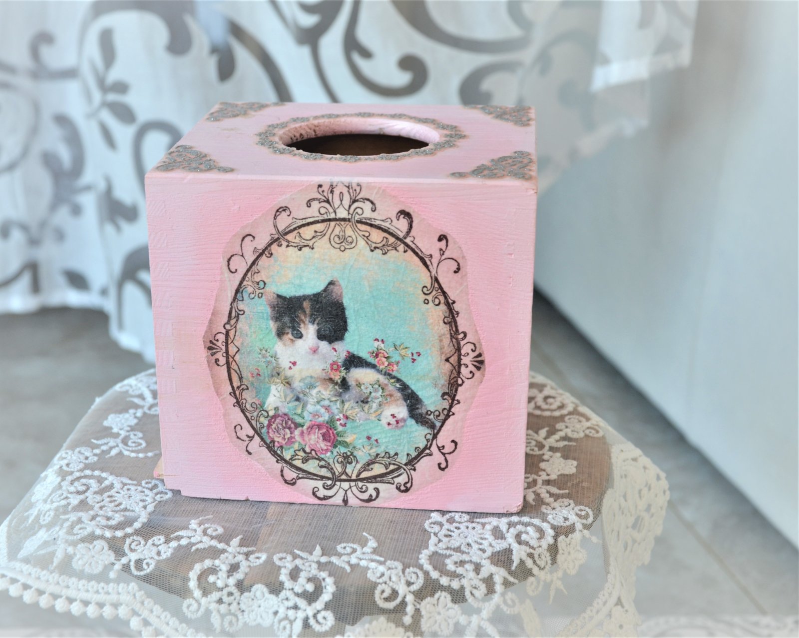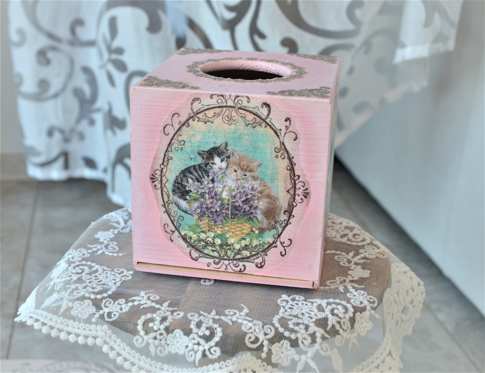 box je používaný,handmade-nevyrábala som ja!!!..vyrobené decopaque technikou,s mačičkovým vzorom,drevený,otvára sa zospodu-rozmer výška 13,5cm,šírka 13cm,môžu sa vyskytnúť malé chybičky krásy...kuk aj na iné moje inzeráty