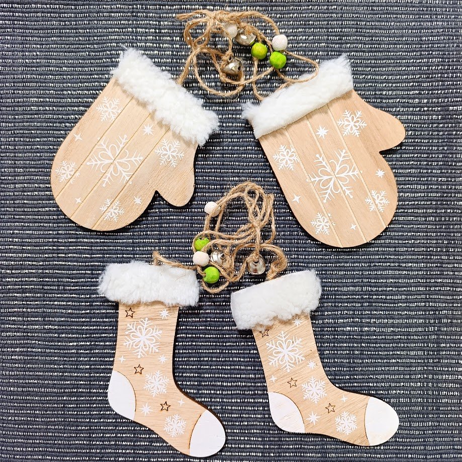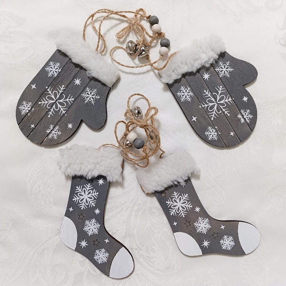 sada rukavice a ponozky ako krasna dekoracia na vianocny stromcek :) velkost az 11 cm, cena za par ponoziek + par rukavic je 4€. mam 2 farby ako na foto