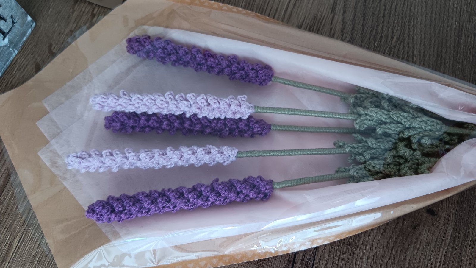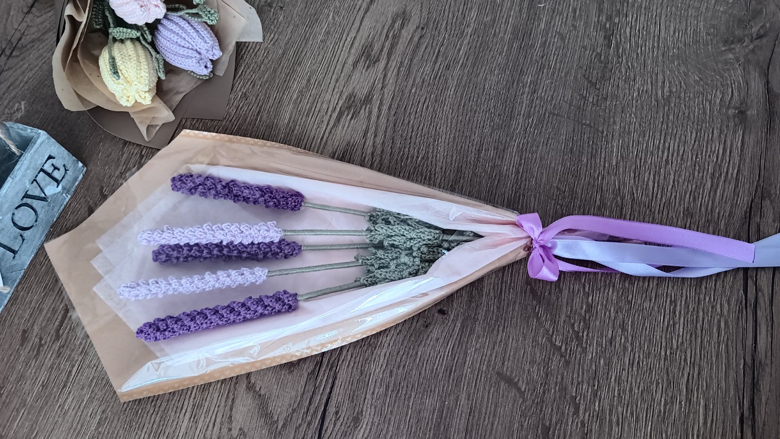 Háčkovaná kytica, levanduľa