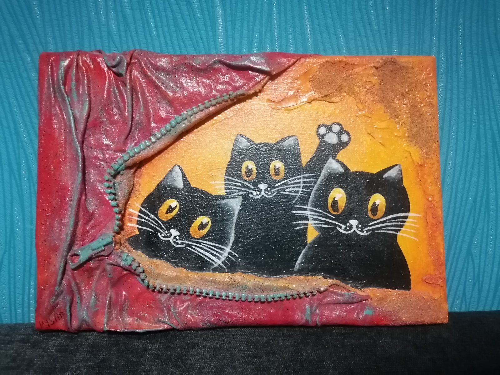 Predám originál obraz 3 mačiatka, kombinovaná technika. Rozmer 30x20 cm. Cena 30 Eur plus poštovné. Posielam aj Packetu. Osobný odber možný v BA.