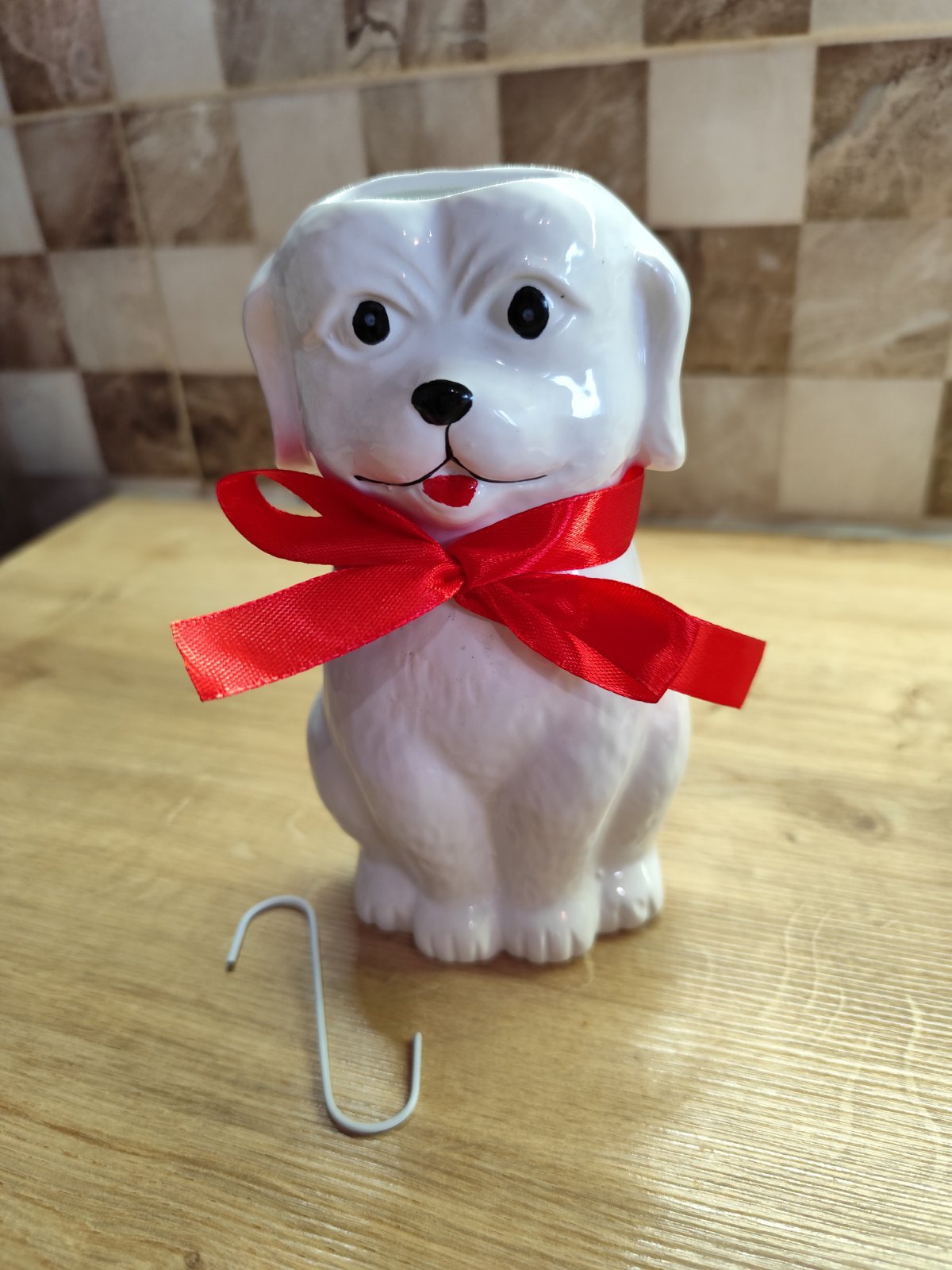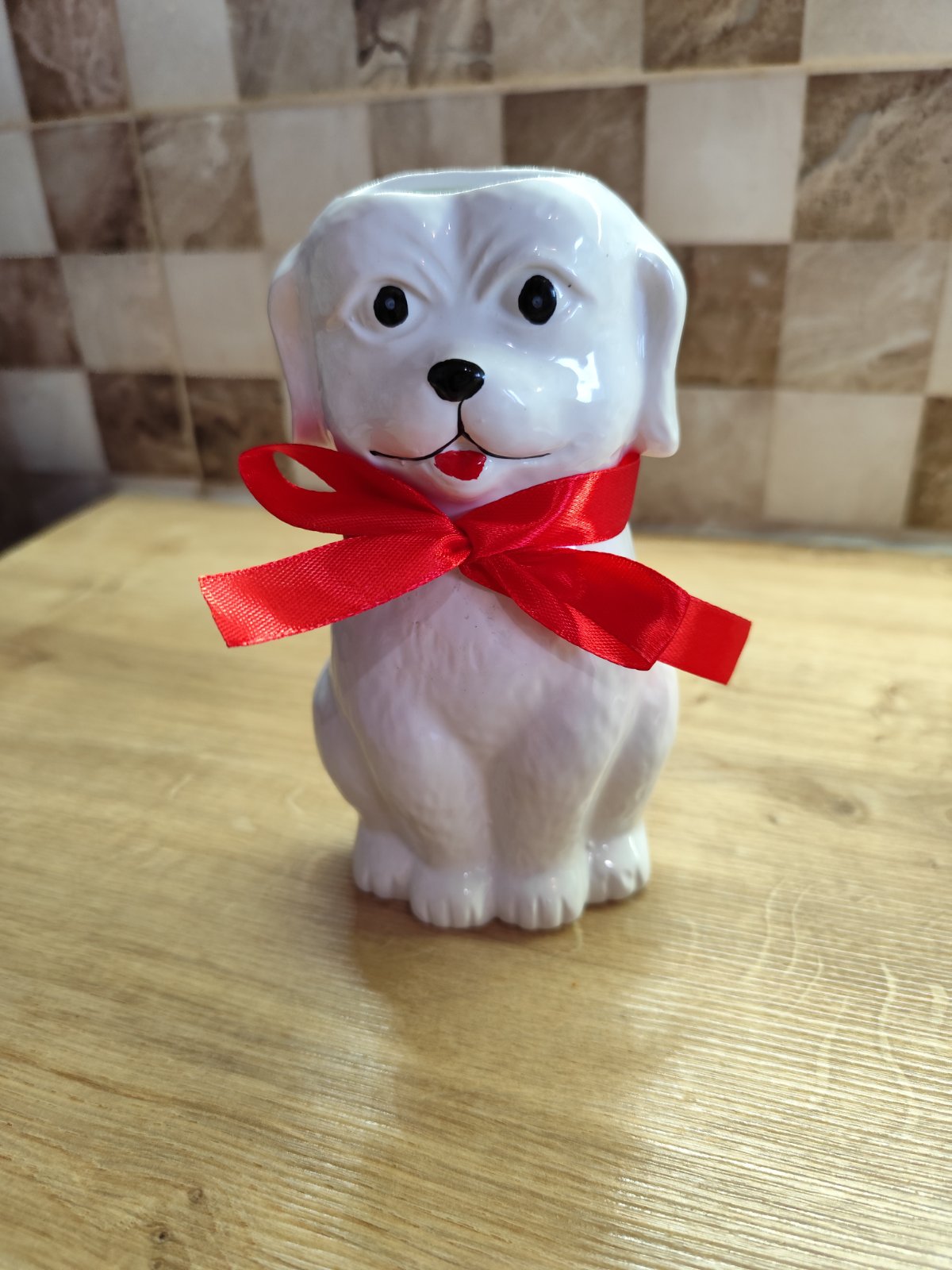 Predám milý a praktický odparovač vzduchu v tvare bieleho psíka s červenou mašľou. Je to skvelý spôsob, ako zvlhčiť vzduch v izbe počas vykurovacej sezóny, a zároveň slúži ako pekná dekorácia.