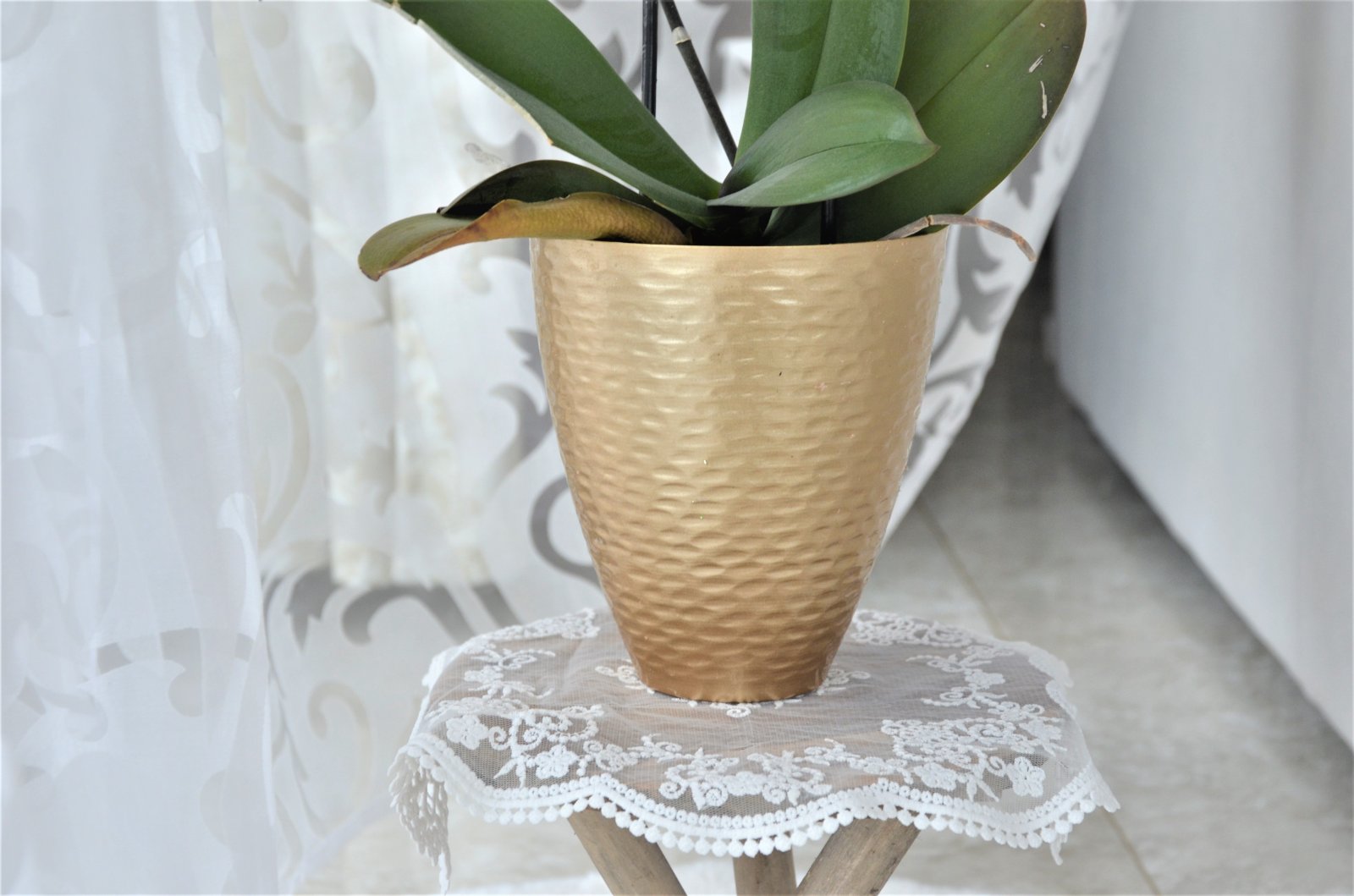 krátko použitý,mala som v ňom naaranžovaný suchý aranž s orchideou,úplne bez poškodení,výška 18cm,horný otvor 16cm,zospodu je dierka na odtok vody...kuk aj na iné moje inzeráty