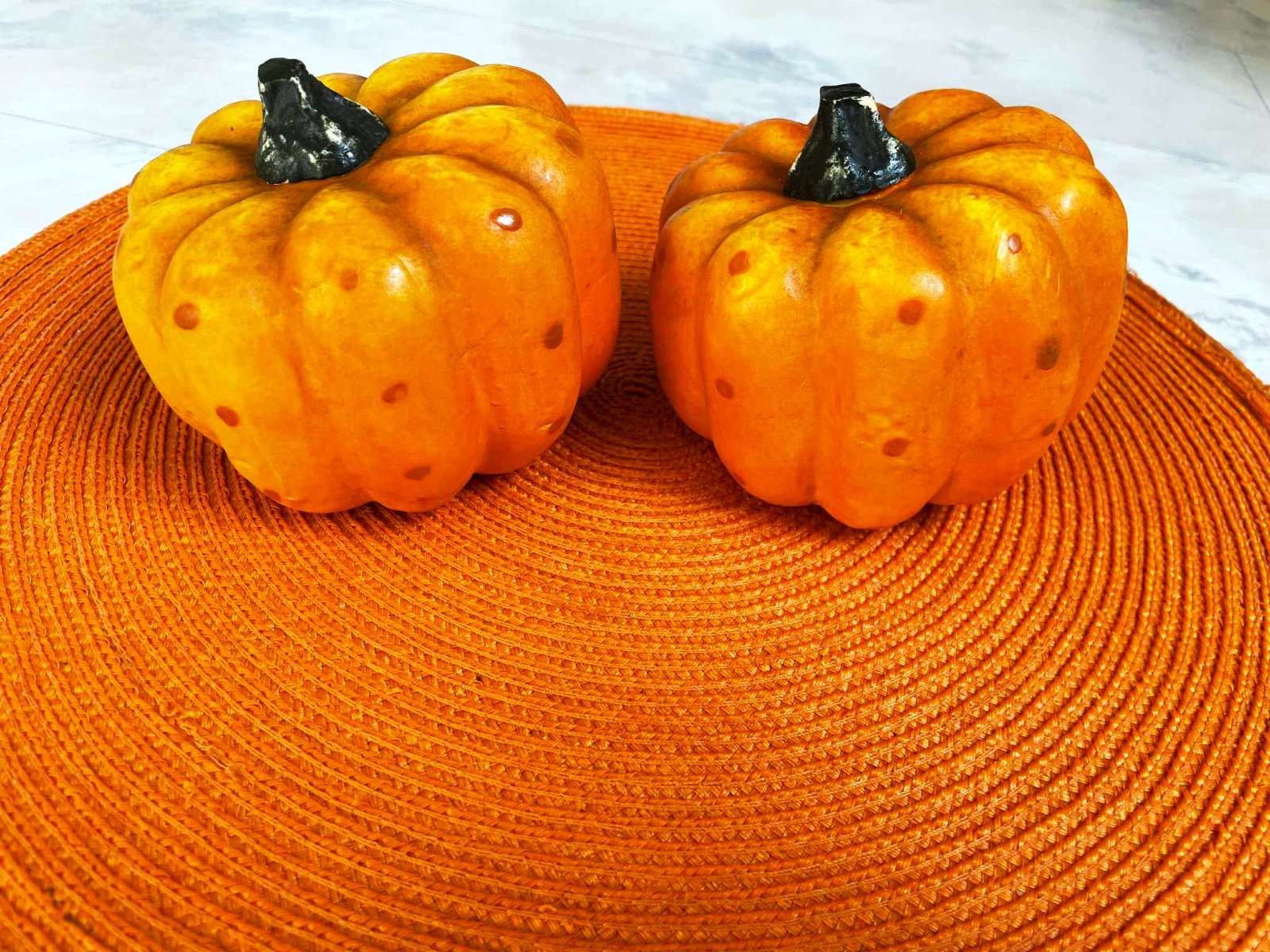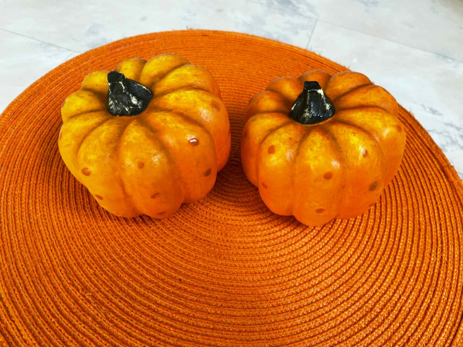 krásna dekorácia do kuchyne,veľmi ľahúčke,pôsobia veľmi dôveryhodne ako skutočné tekvičky,málo používané...