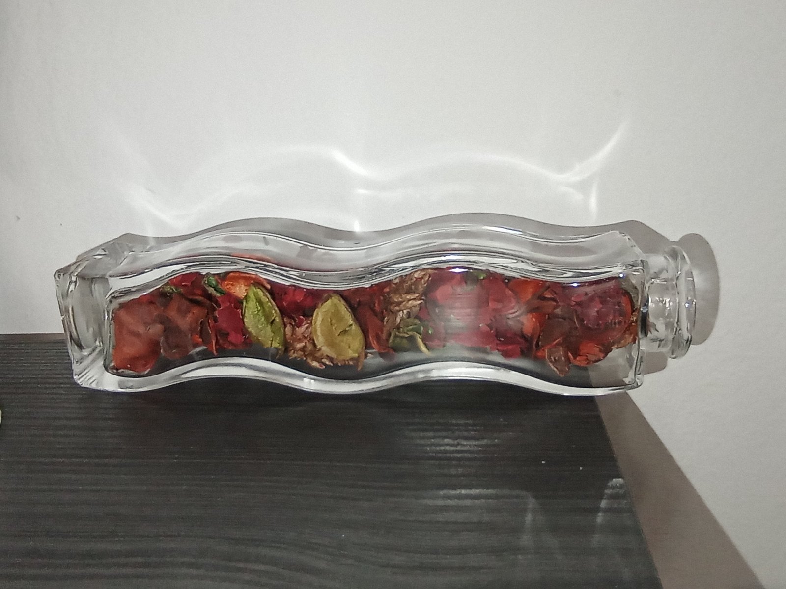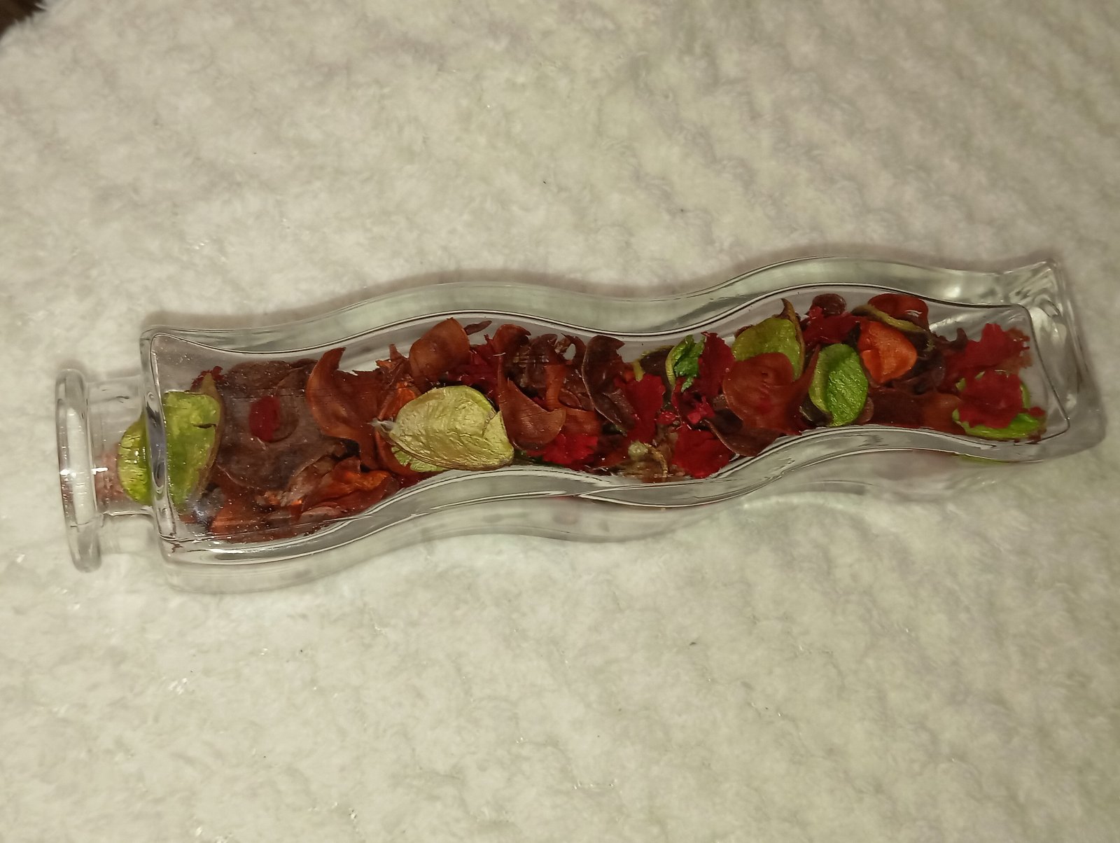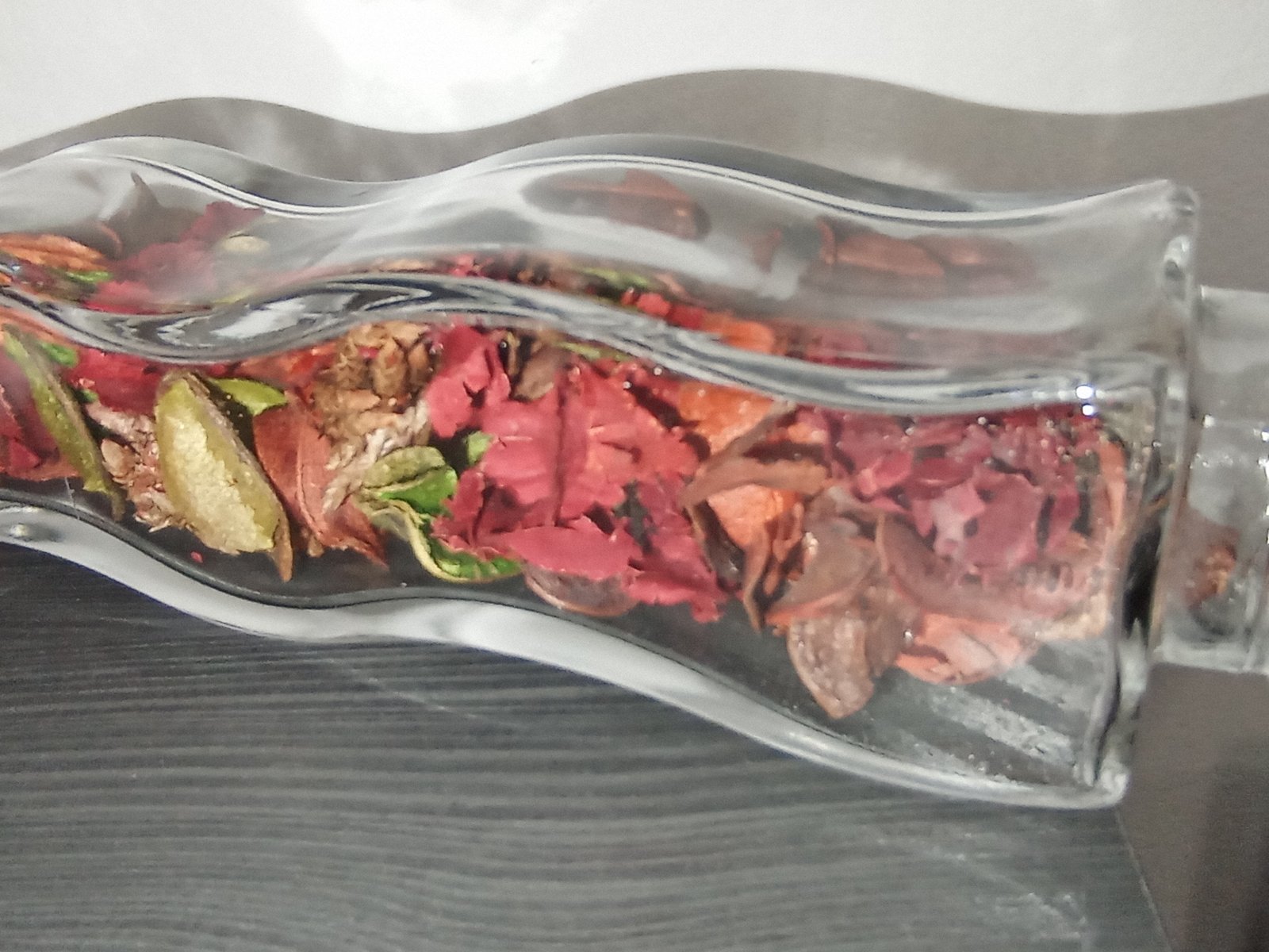 Dekorácia v priesvitnej sklenej vlnkovej váze.