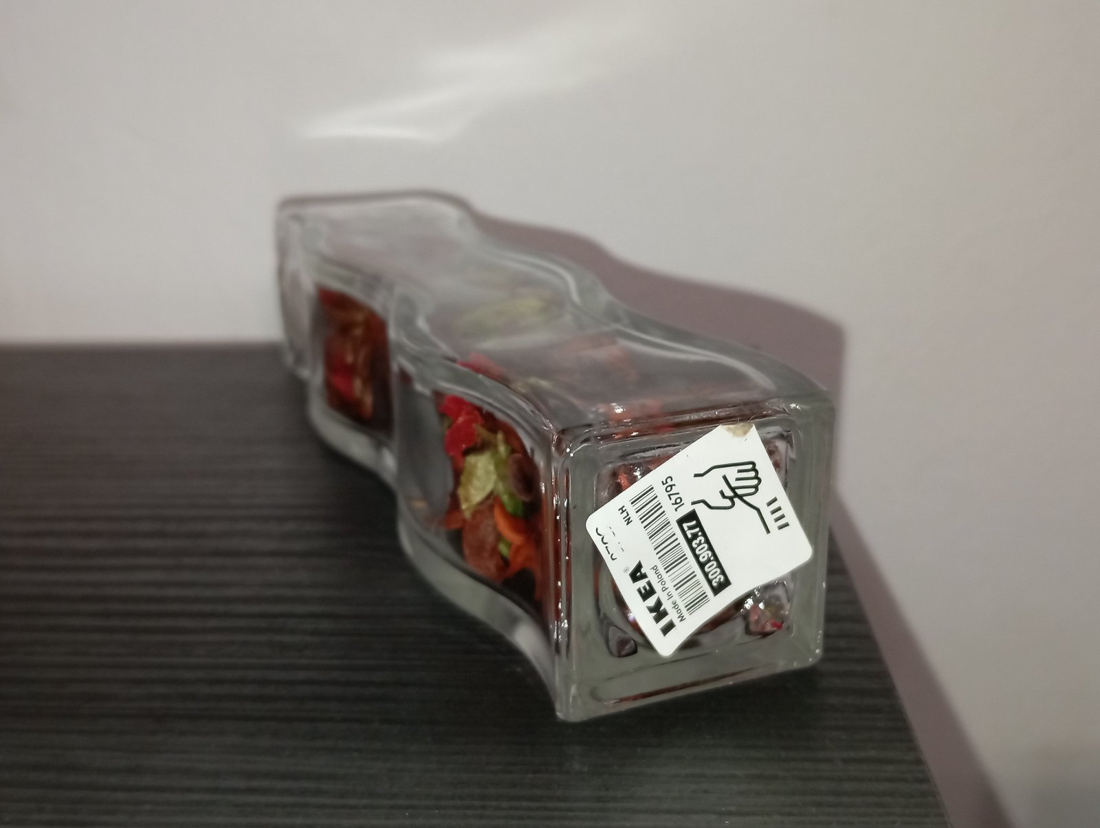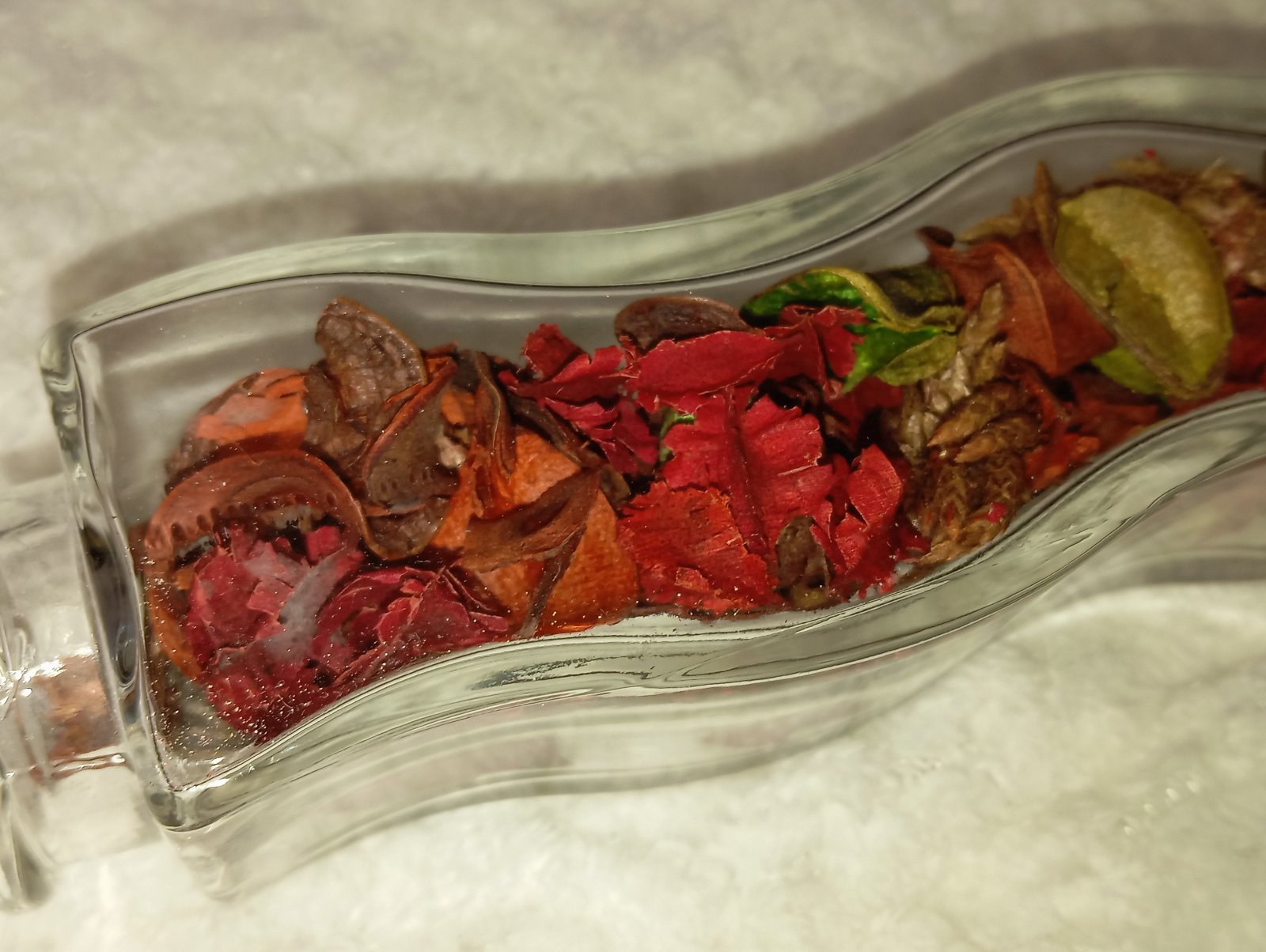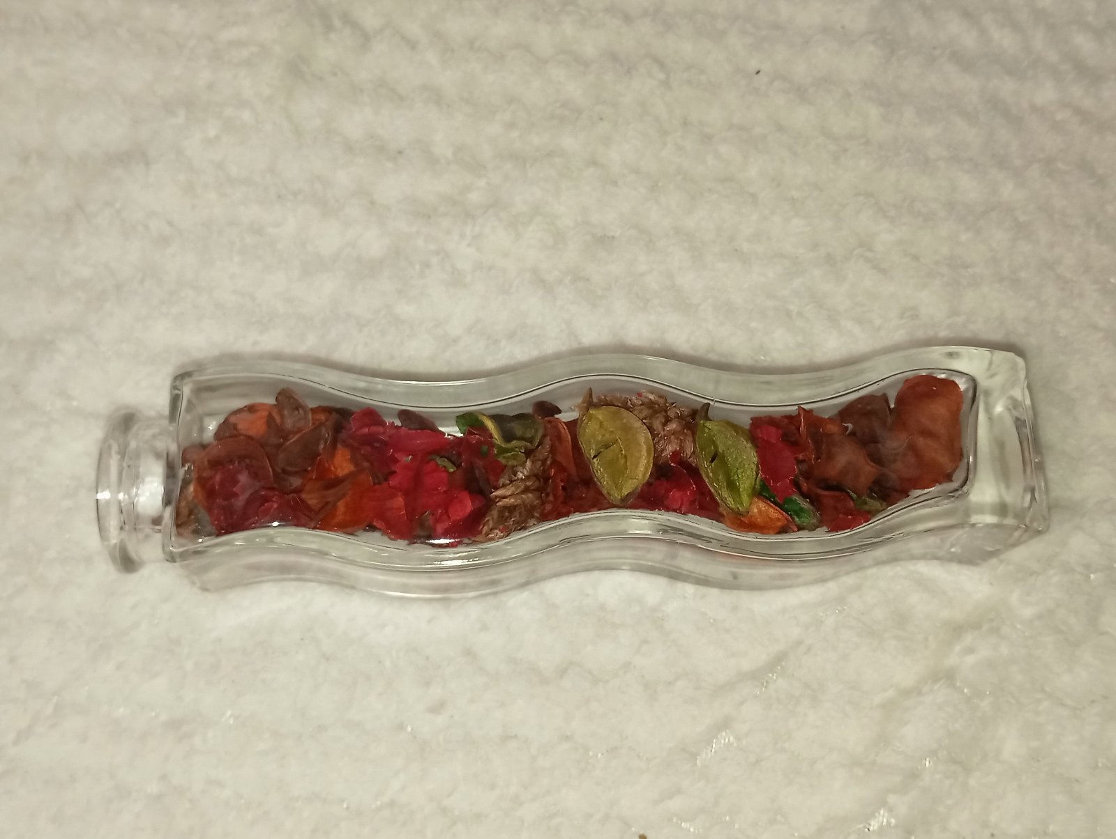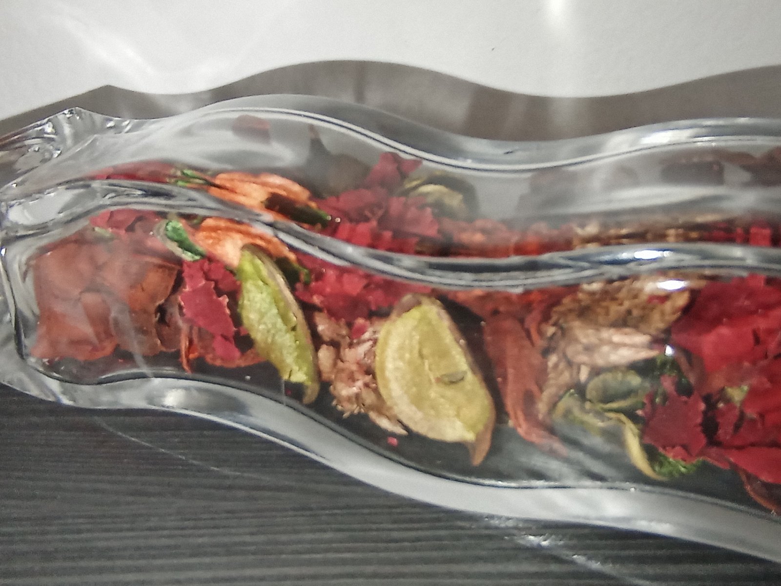 Dekorácia v priesvitnej sklenej vlnkovej váze.