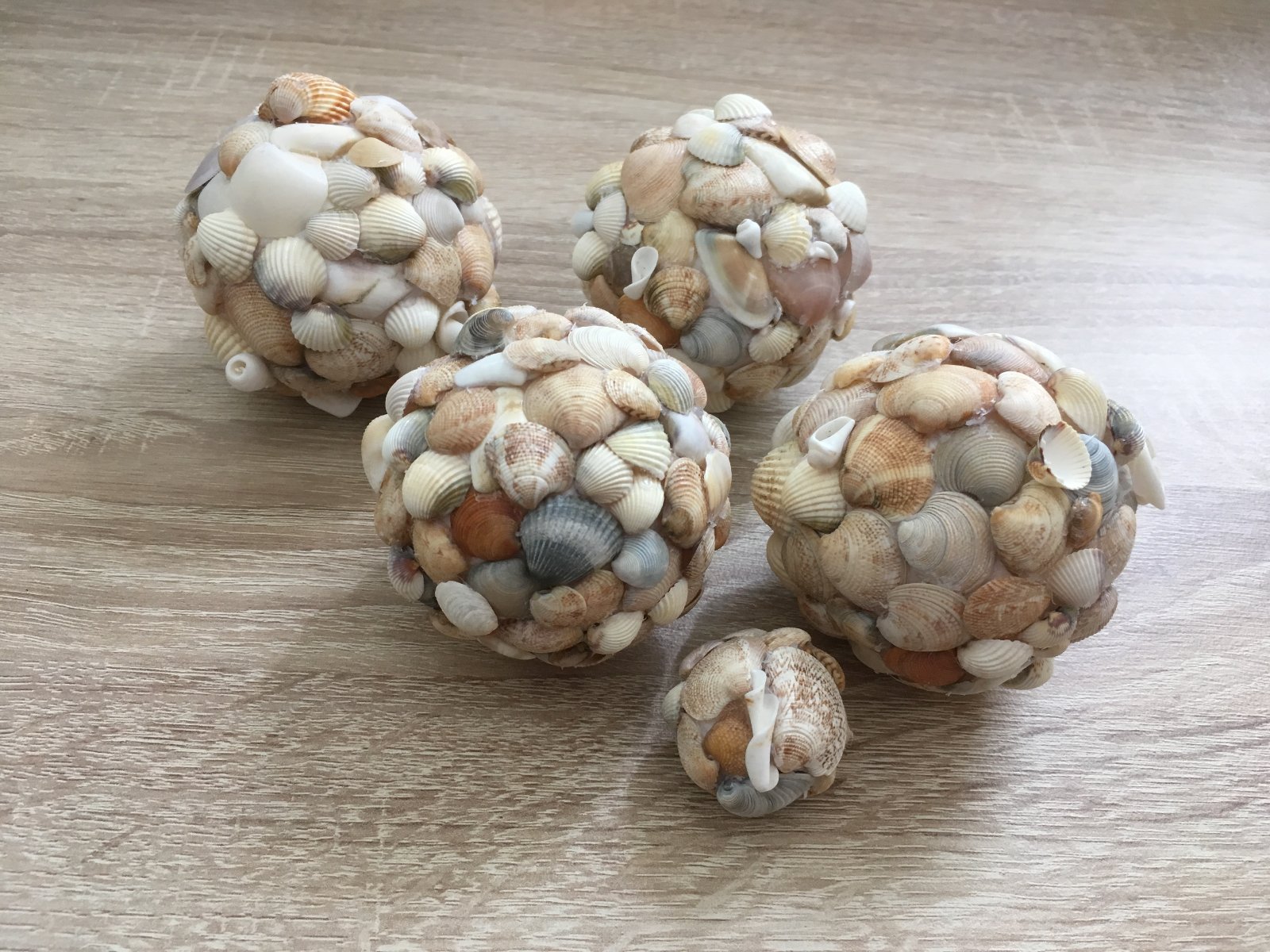 dekoračné polystyrénové gule oblepené mušľami. každá je originál. väčšia guľa (priemer cca 6cm) 2,00€ mini guľa (cca 2cm) 0,80