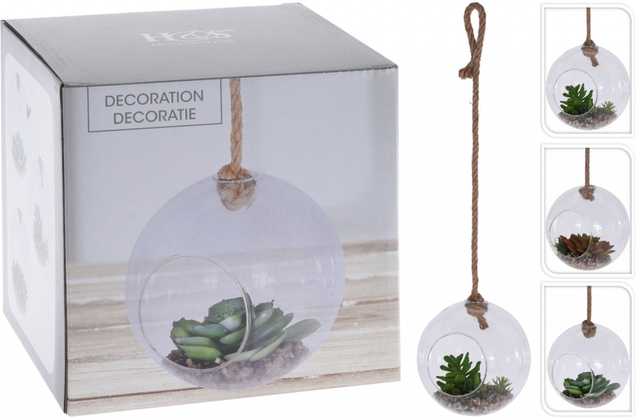 Originálna moderná dekorácia - 3ks sklených závesných dekorácií s umelými sukulentami a kamienkami, každý je iný a vyzerajú ako živé