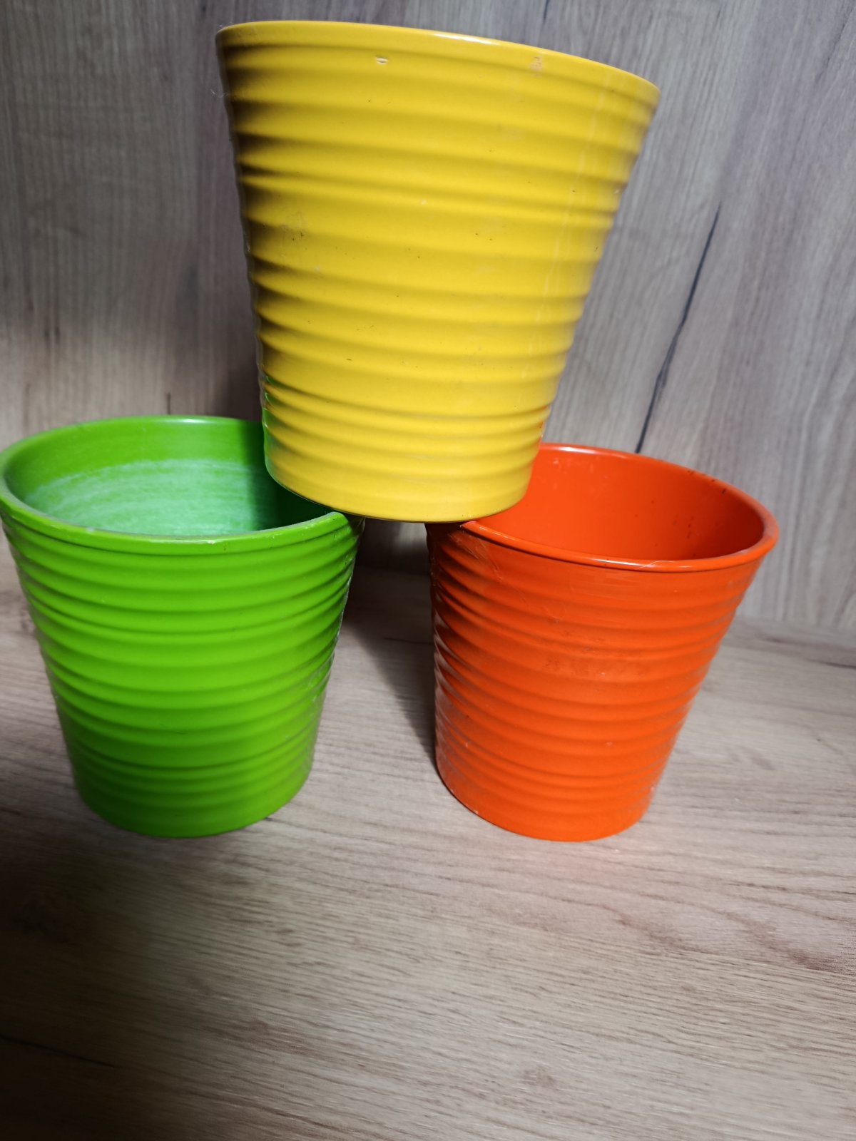 Fialový kvetináč - keramický - priemer 13 cm - 3 EUR Bledomodrý kvetináč - keramický - priemer 13 cm - 2 EUR Žltý kvetináč - plastový - priemer 18 cm - 1 EUR (mám 2 ks) Všetky 4 spolu predám za 6 EUR