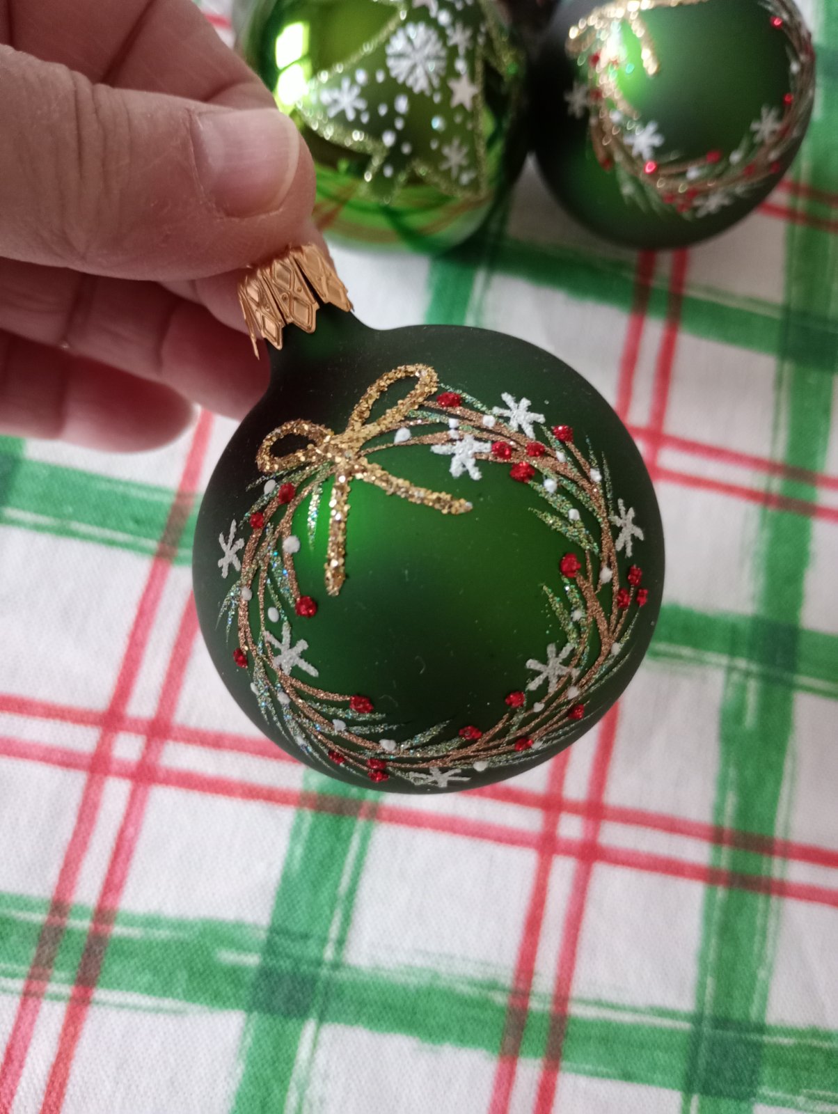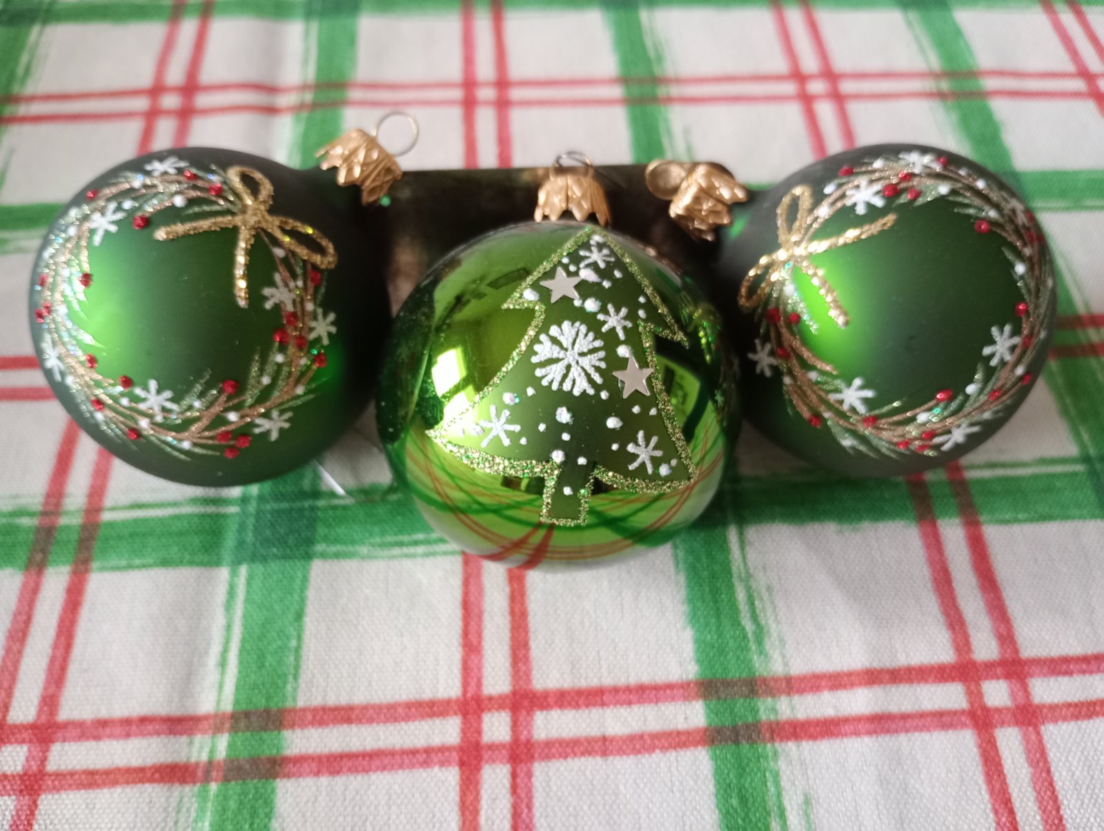 Predám nové sklenené vianočné gule - 3 ks zelené- spolu 12€ a 1 strieborná v štýle vintage 5€. (Povrch pôsobí ako popukaný, ale to je taký dizajn)
