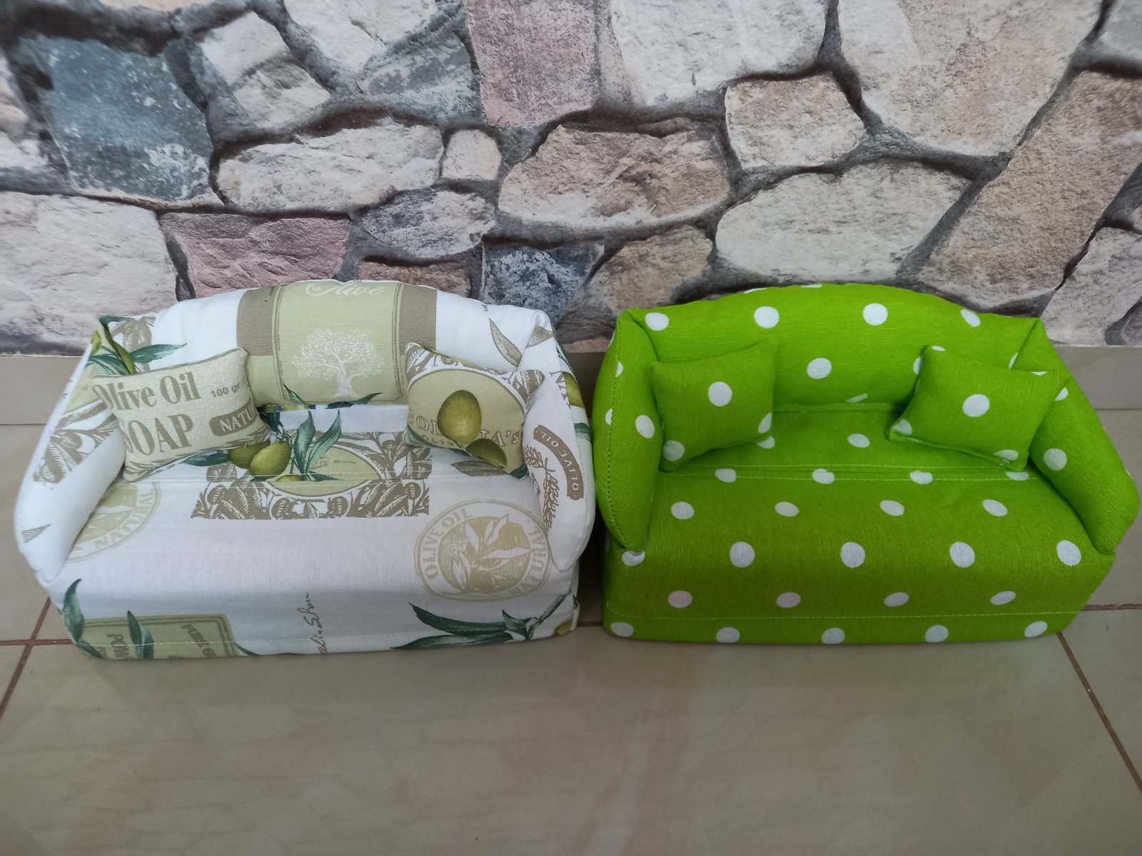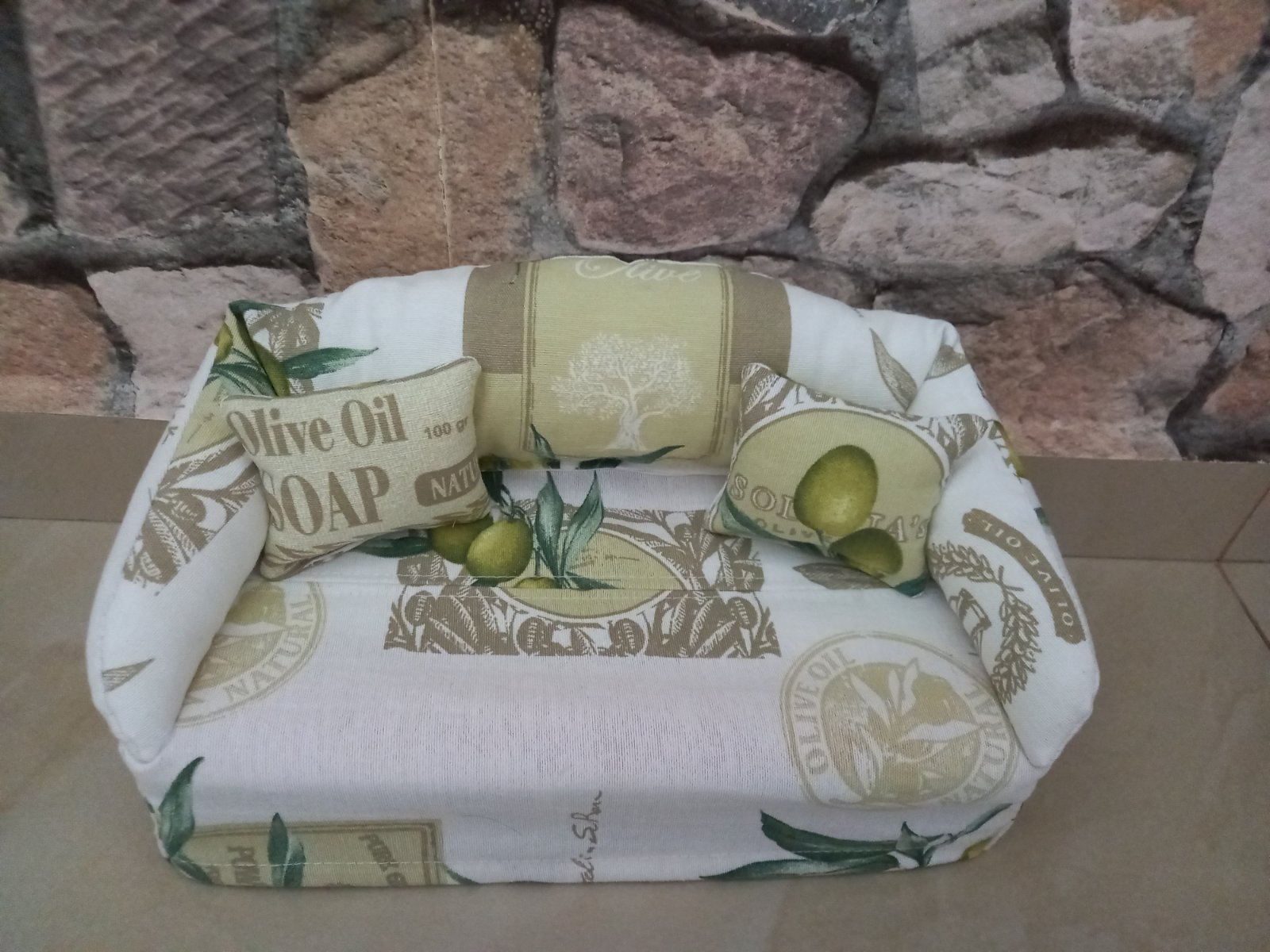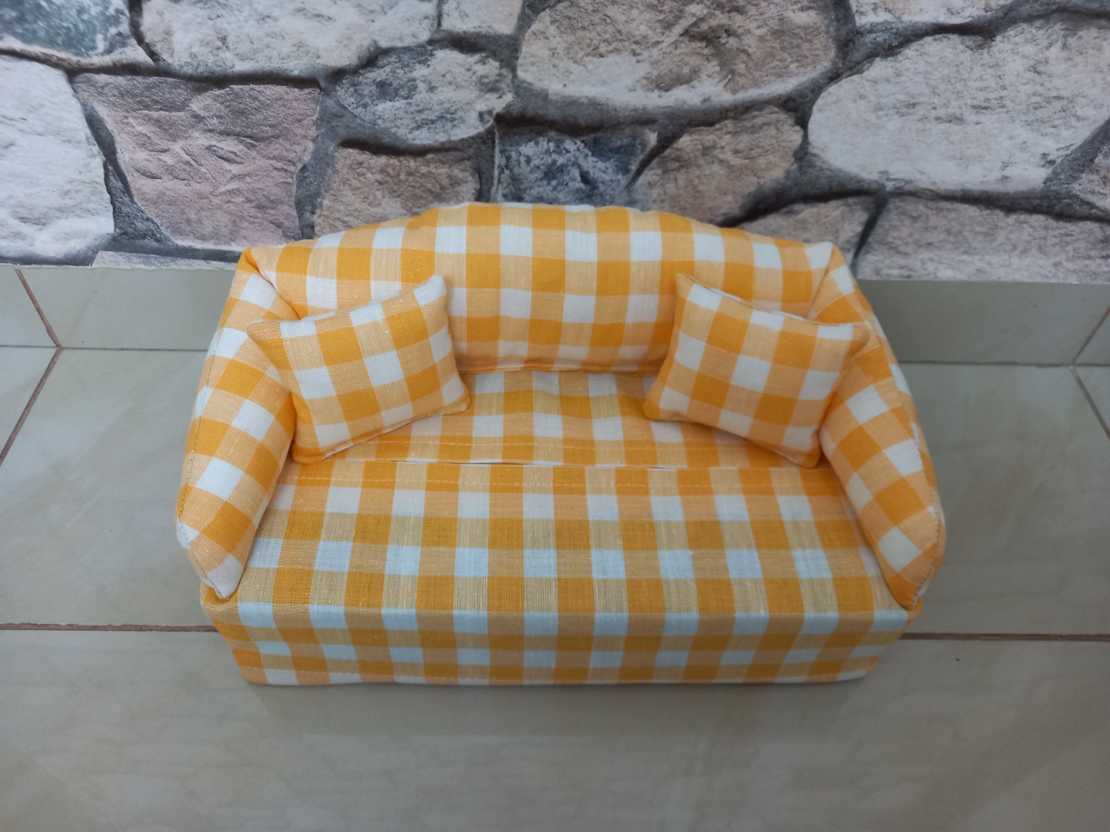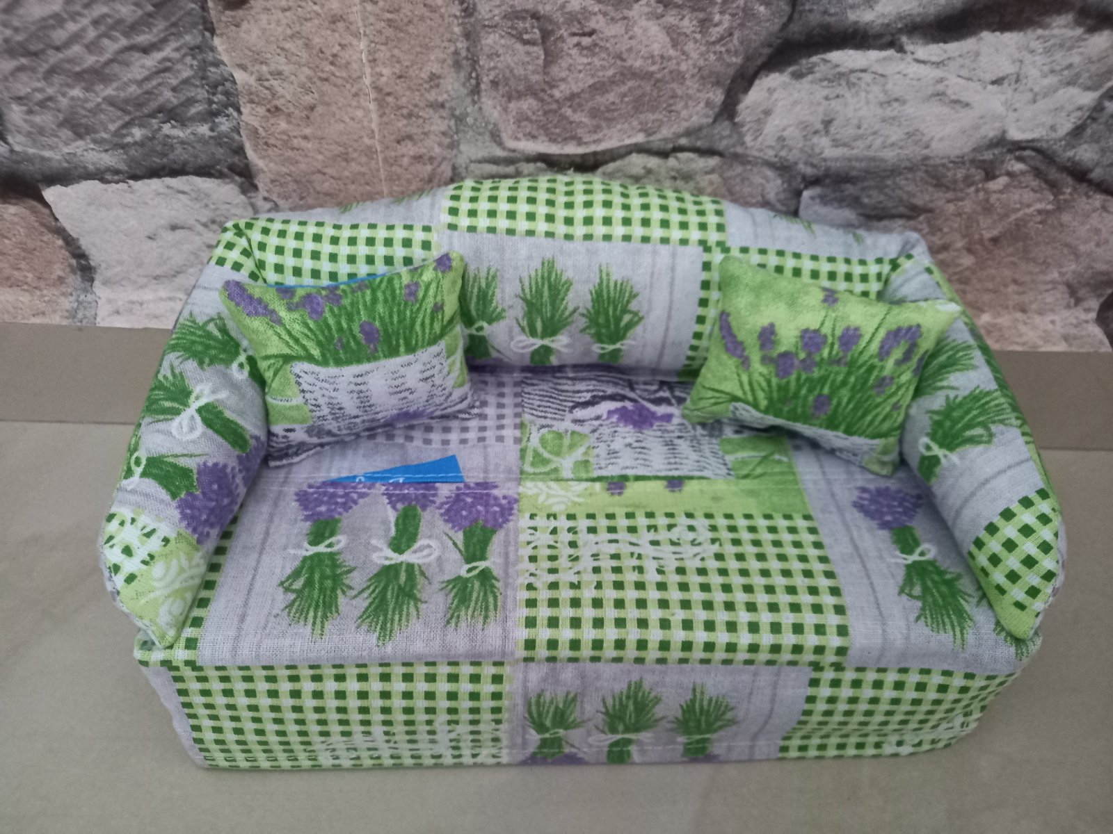 Vhodné aj pre barbinky a malé bábiky. Zo spodu je poťah na gumu,po vyminutí vreckoviek za ľahko vymení nová krabička.Gaučík je plnený dutým vláknom-naplň do vankúšov.Cena je bez vreckoviek.Šijem aj na 200 kusové krabičky. Osobné prevzatie dolné hony BA, poštou posielam po uhradení platby vopred na účet