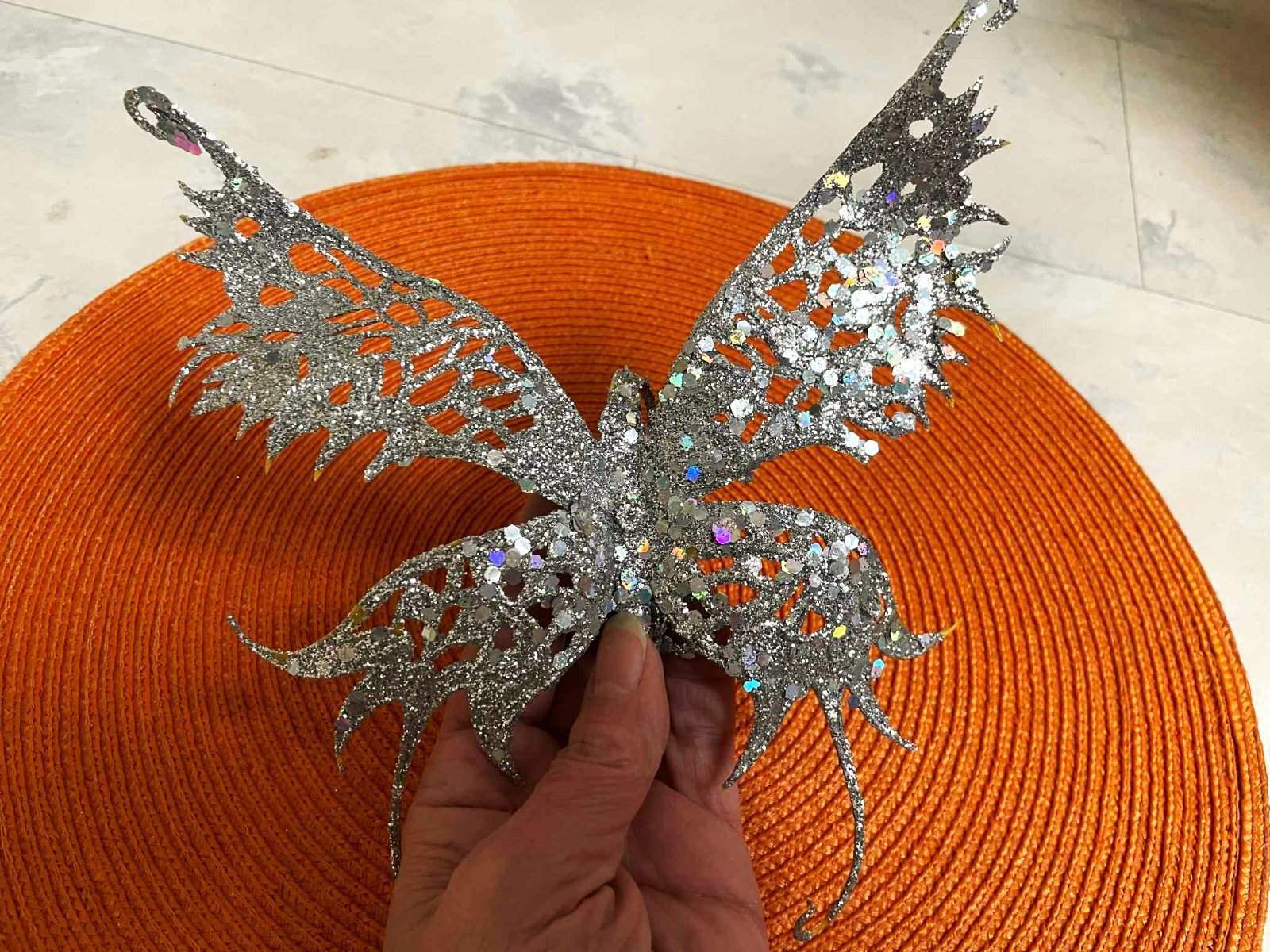 trblietavý vianočný motýľ, dá sa umiestniť kdekoľvek, položiť alebo upnúť na štipec, rozmer : 18 x 19 cm, na spodku štipec na uchytenie, ohybný.....