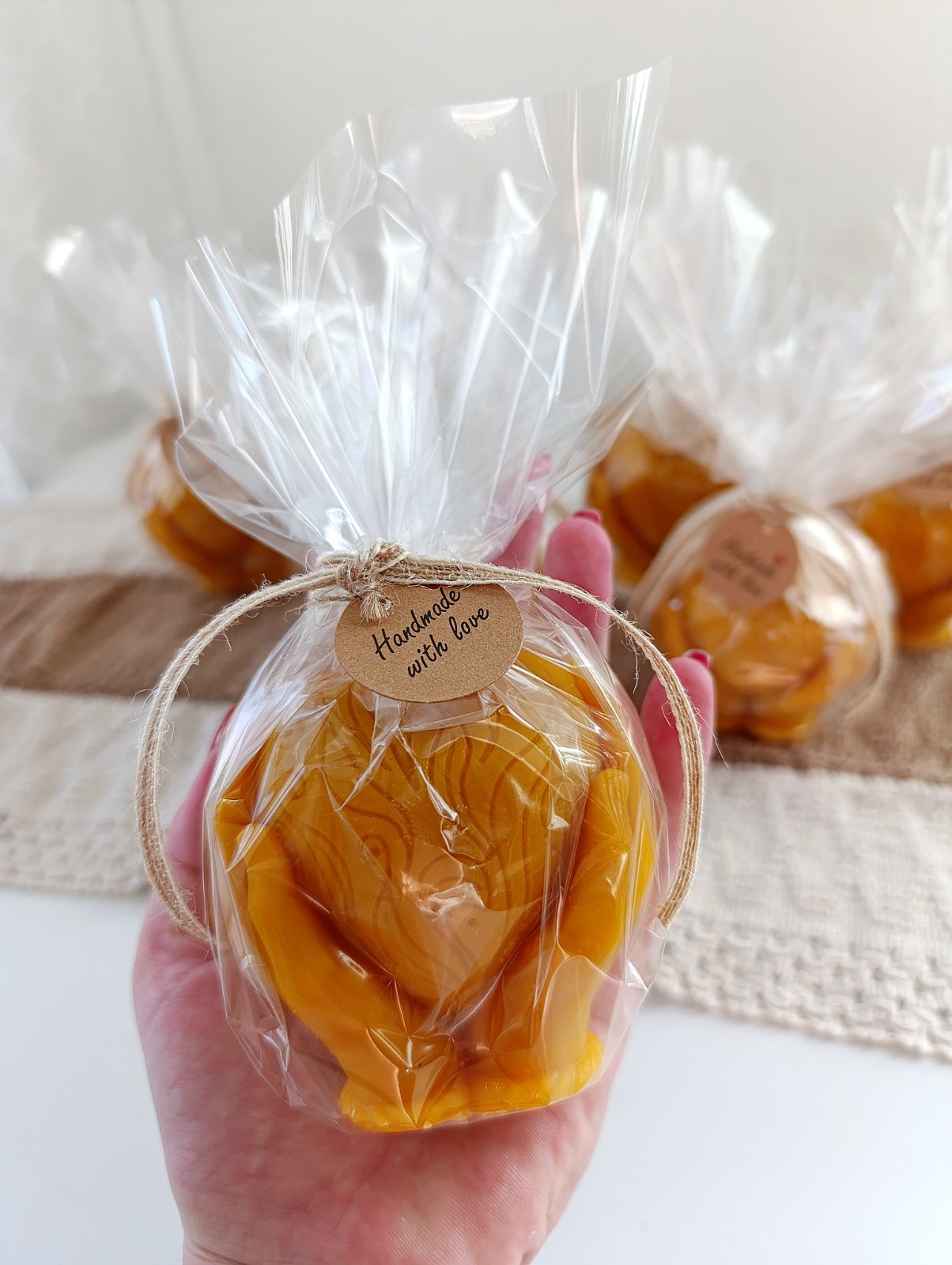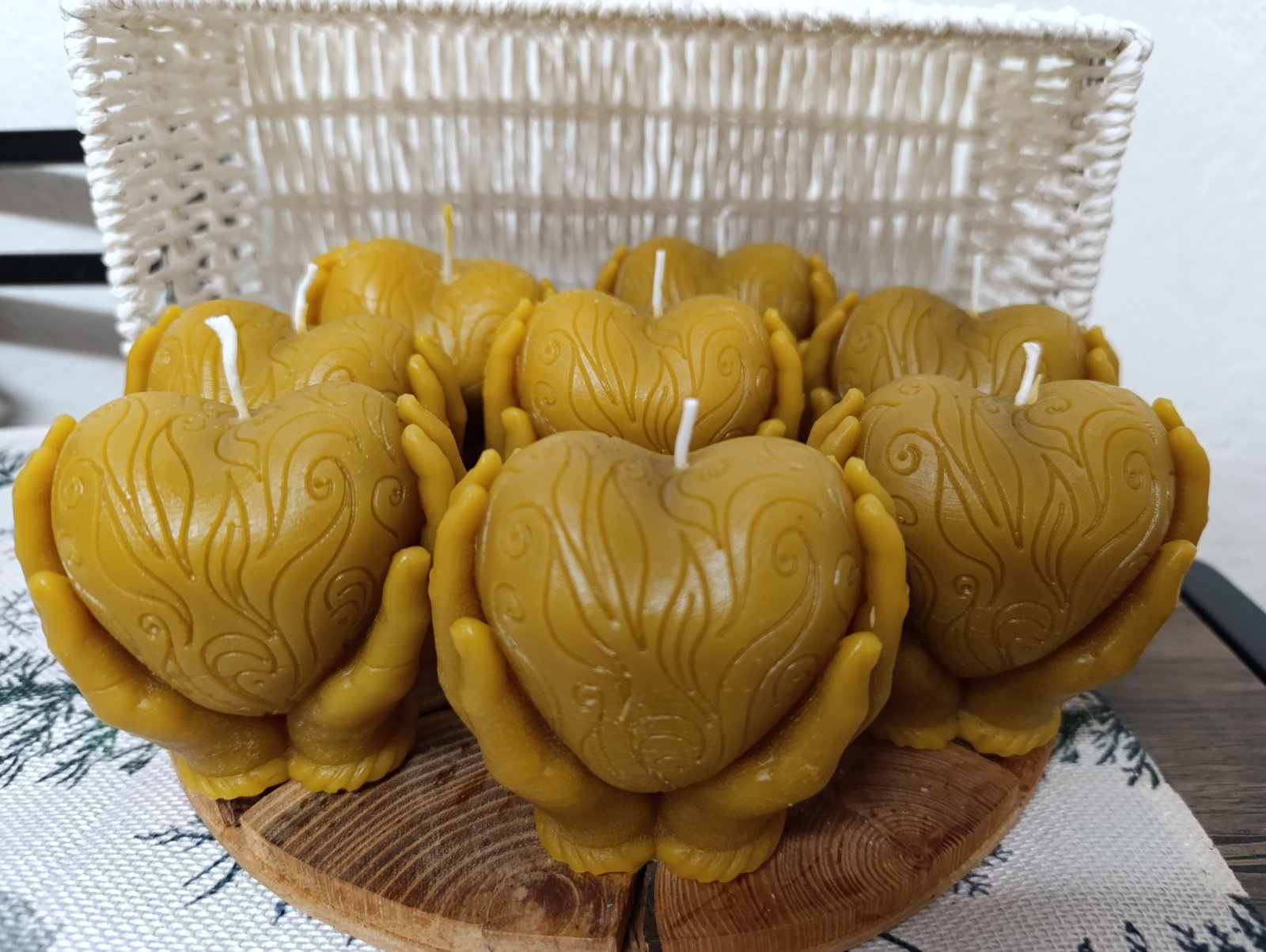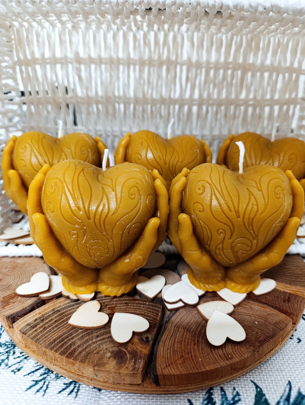 Daruj svoje srdce na dlani z včelieho vosku.